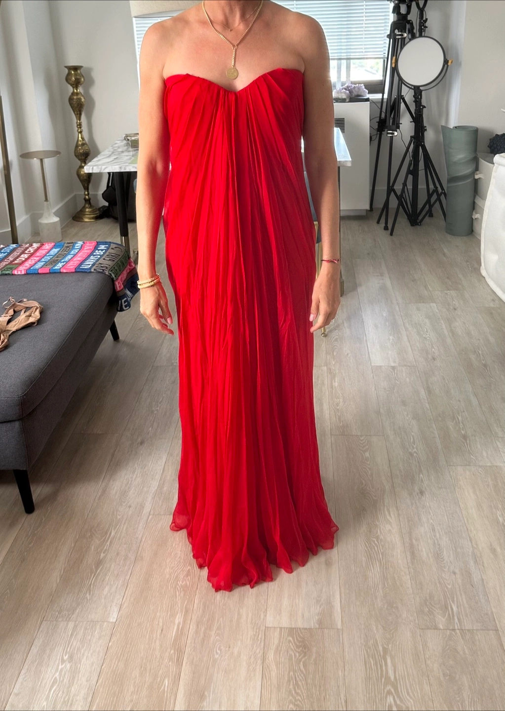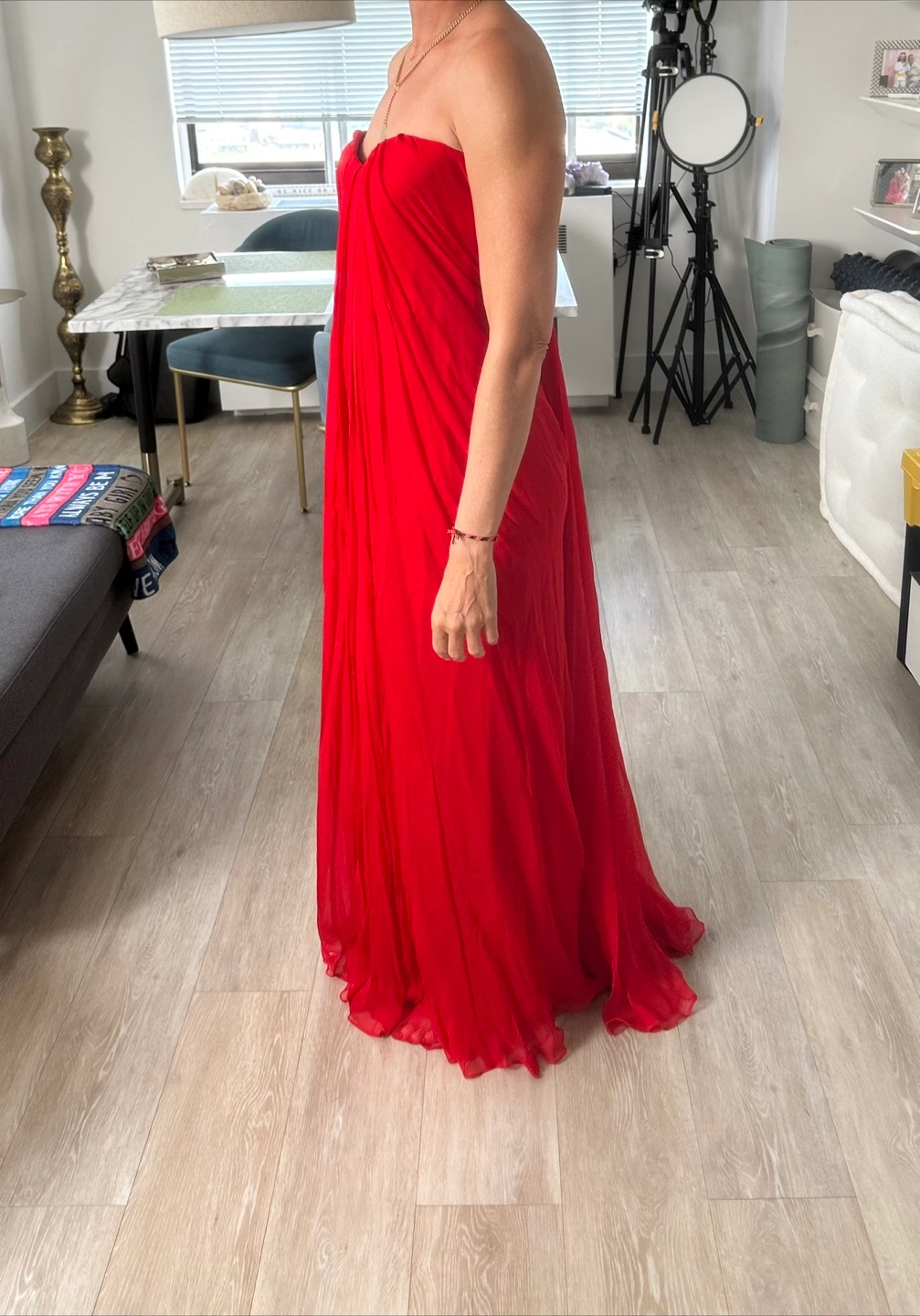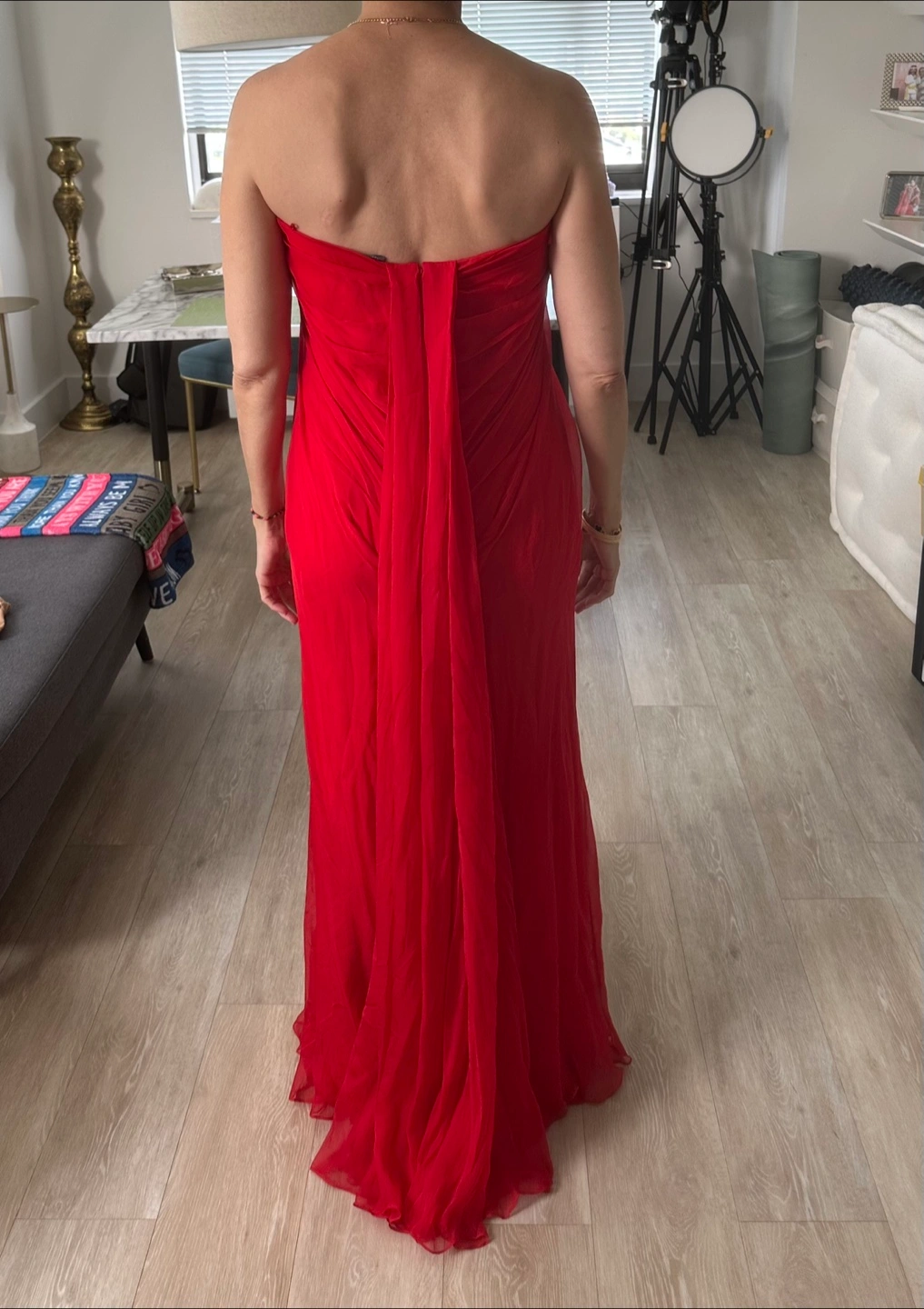 Originally $4200! Beautiful red strapless dress, perfect for a special occasion! The dress is a vibrant red color and has a flowing, elegant design. It's in great condition and ready for a new home