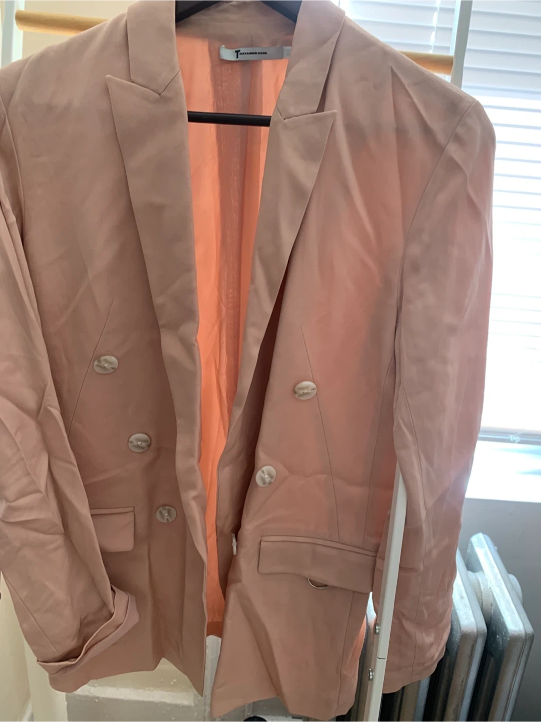 Selling a stylish Alexander Wang blazer in size 2! It's a beautiful light pink color and in great condition. Perfect for adding a touch of sophistication to any outfit