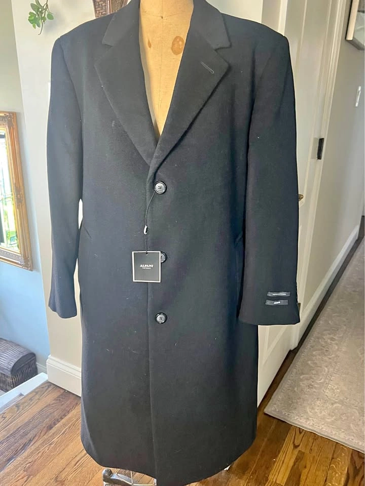 5Men's Wool / Cashmere Black long coat Size 42 Short New never worn
