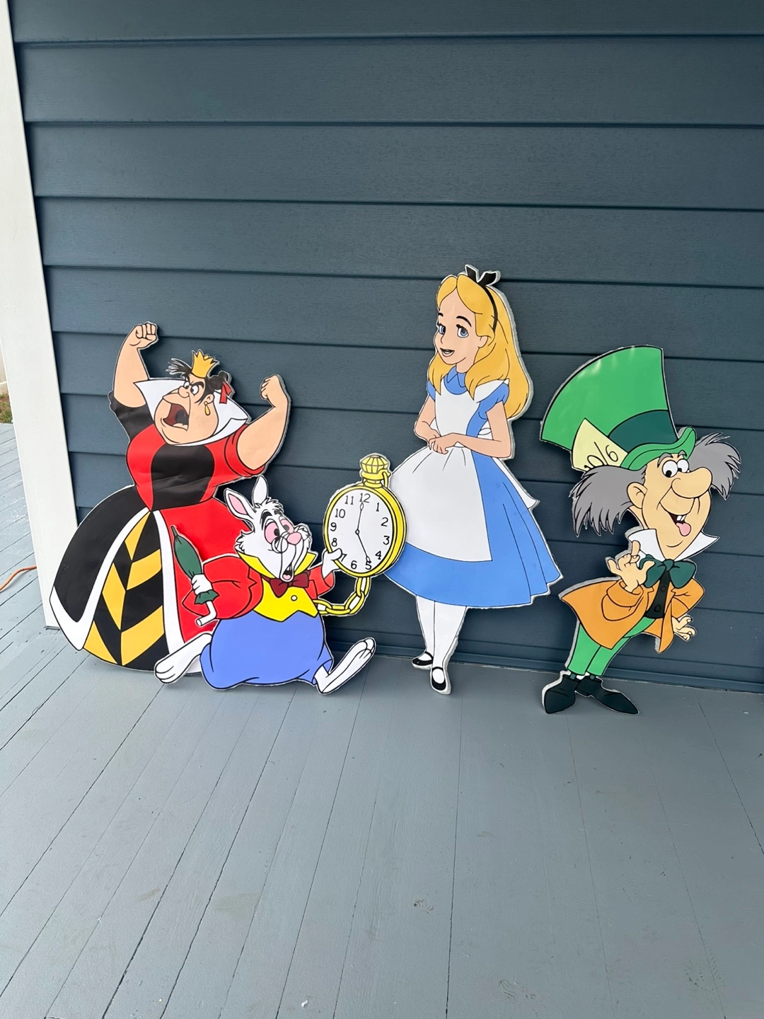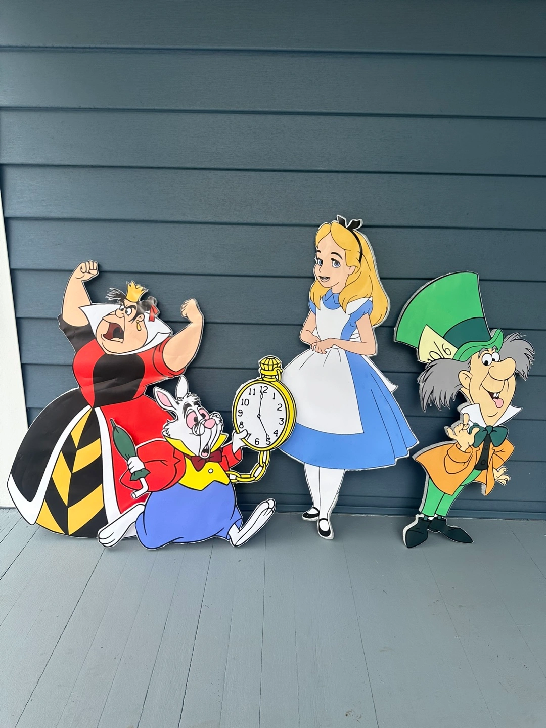 Selling a set of Alice in Wonderland-themed party decorations! These are perfect for adding a whimsical touch to any celebration or event. Includes standees of Alice, the Mad Hatter, the Queen of Hearts, and the White Rabbit. They're in great condition and ready to bring some Wonderland magic to your party