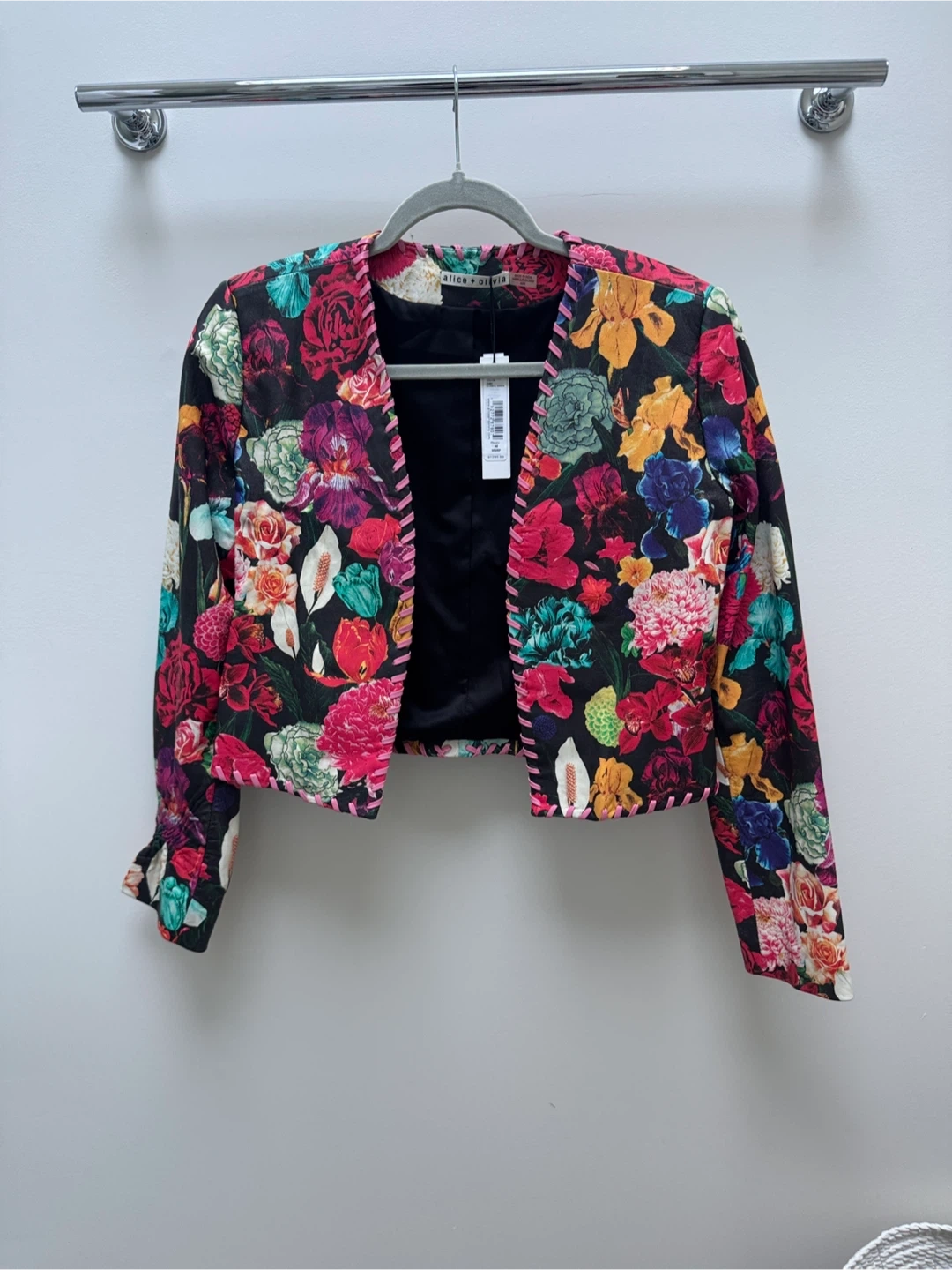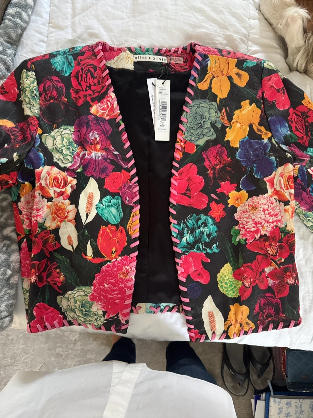Selling a beautiful Alice + Olivia floral jacket in size medium! The jacket features a vibrant "Botanical Garden" color pattern. Originally retailed for $1295. It's in great condition and ready for a new home