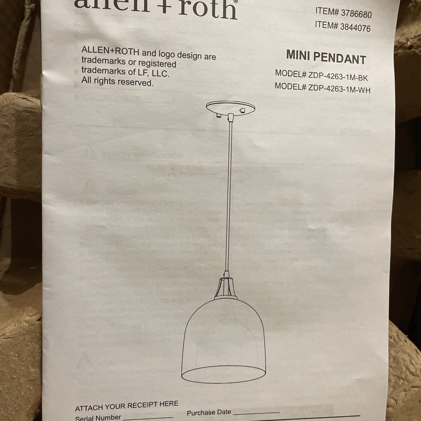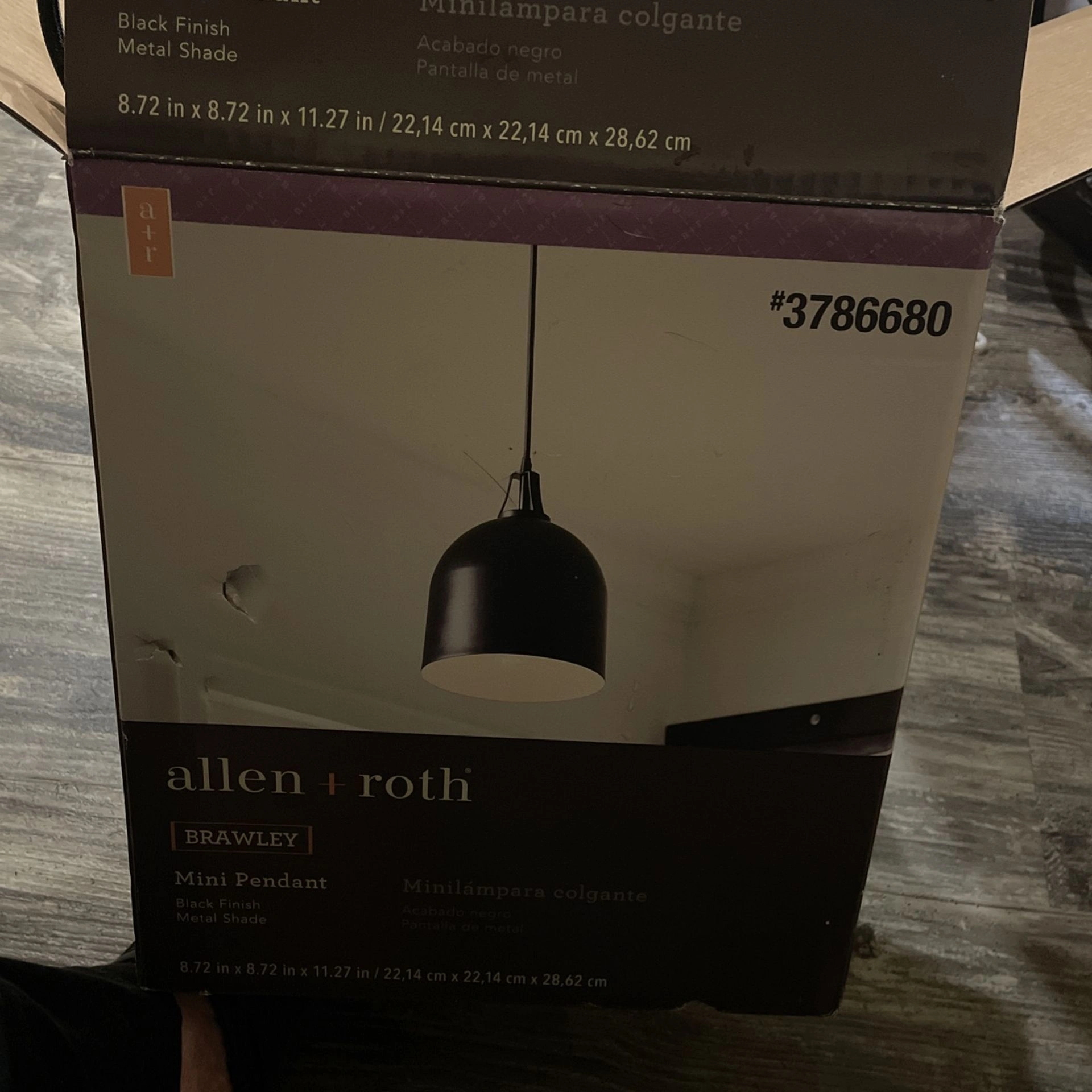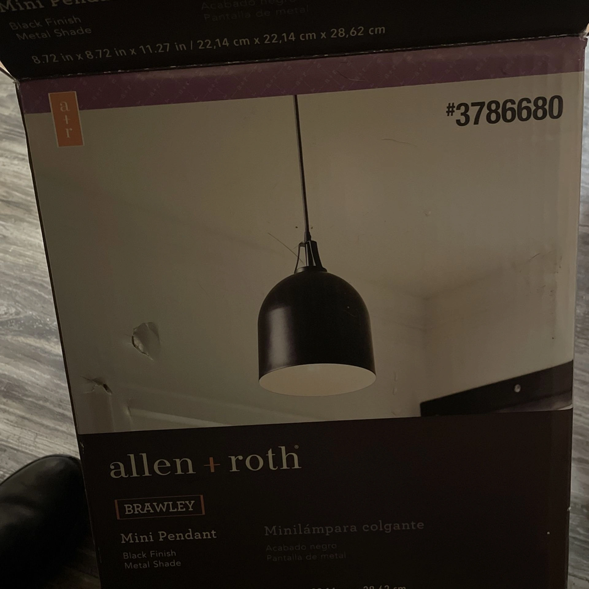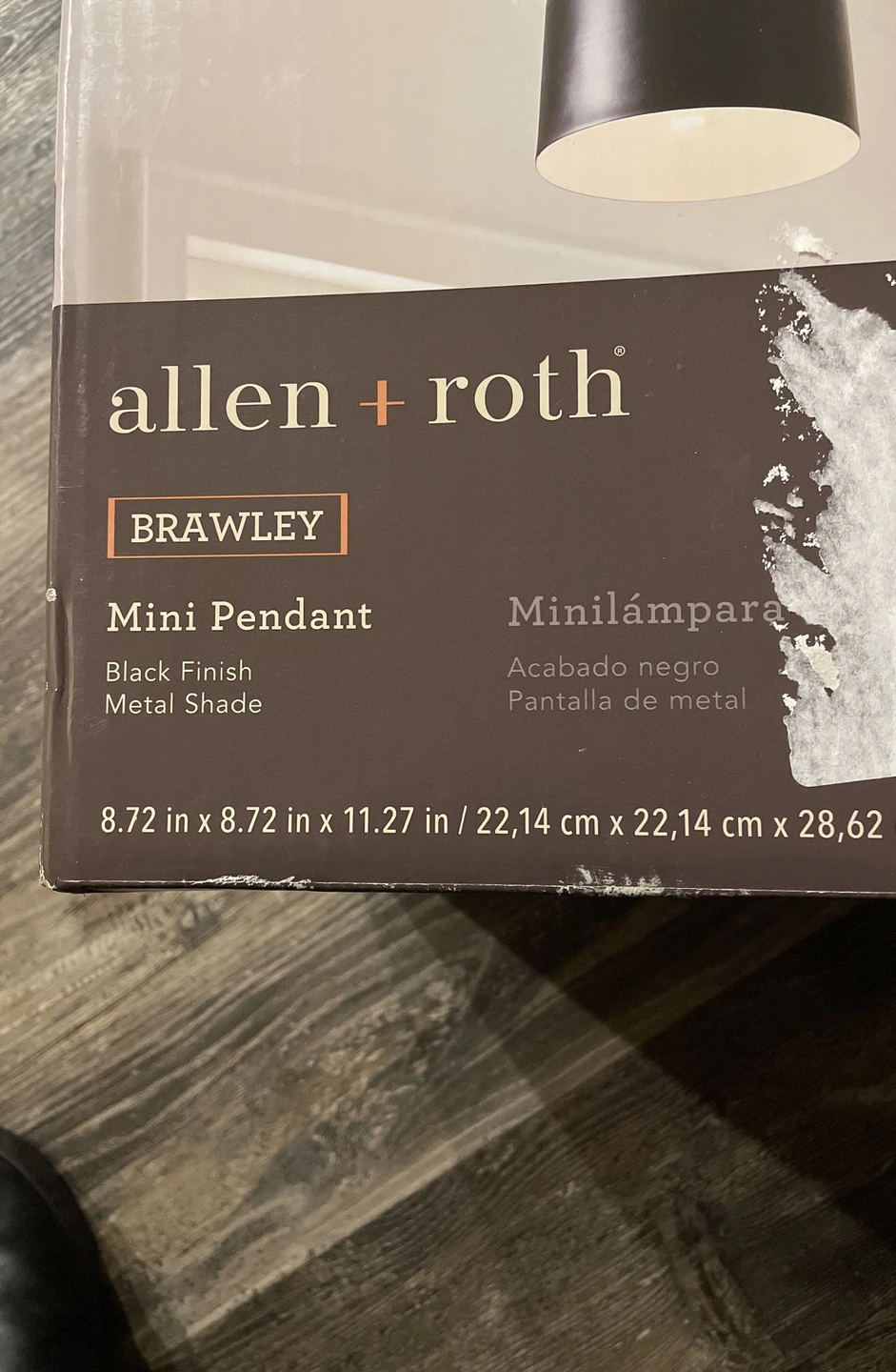 70Allen & Roth Brawley Mini Pendant Light with Black Metal Shade 8.72 in x 8.72 in x 11.27 in (22,14 cm x 22,14 cm x 28,62 cm) Color: Black Type: Ceiling light fixture Brand: Allen & Roth