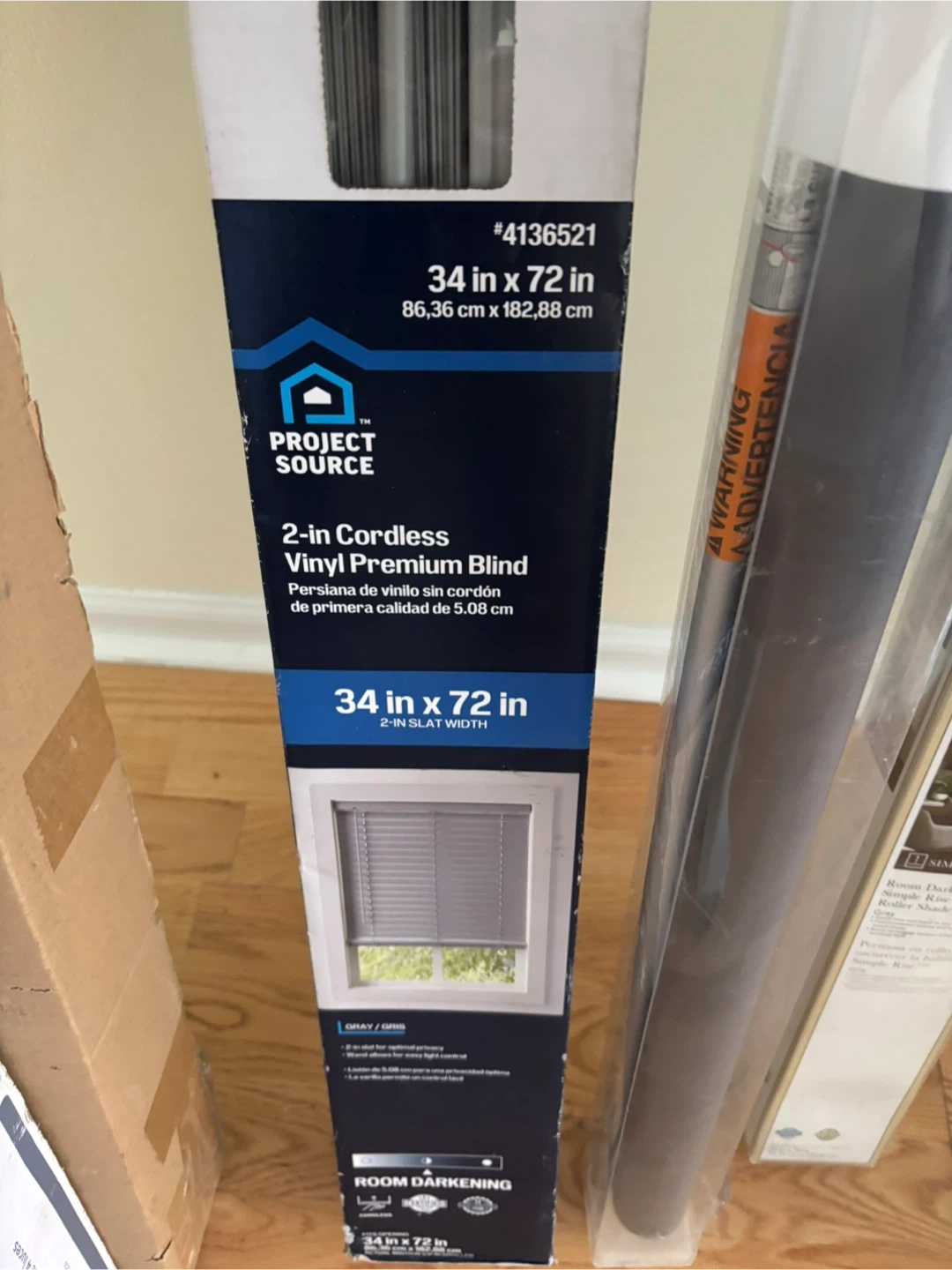 I'm selling an Allen + Roth room darkening roller blind. It measures 34 inches by 72 inches. It will be a great addition to your home! Multiple blinds and shades