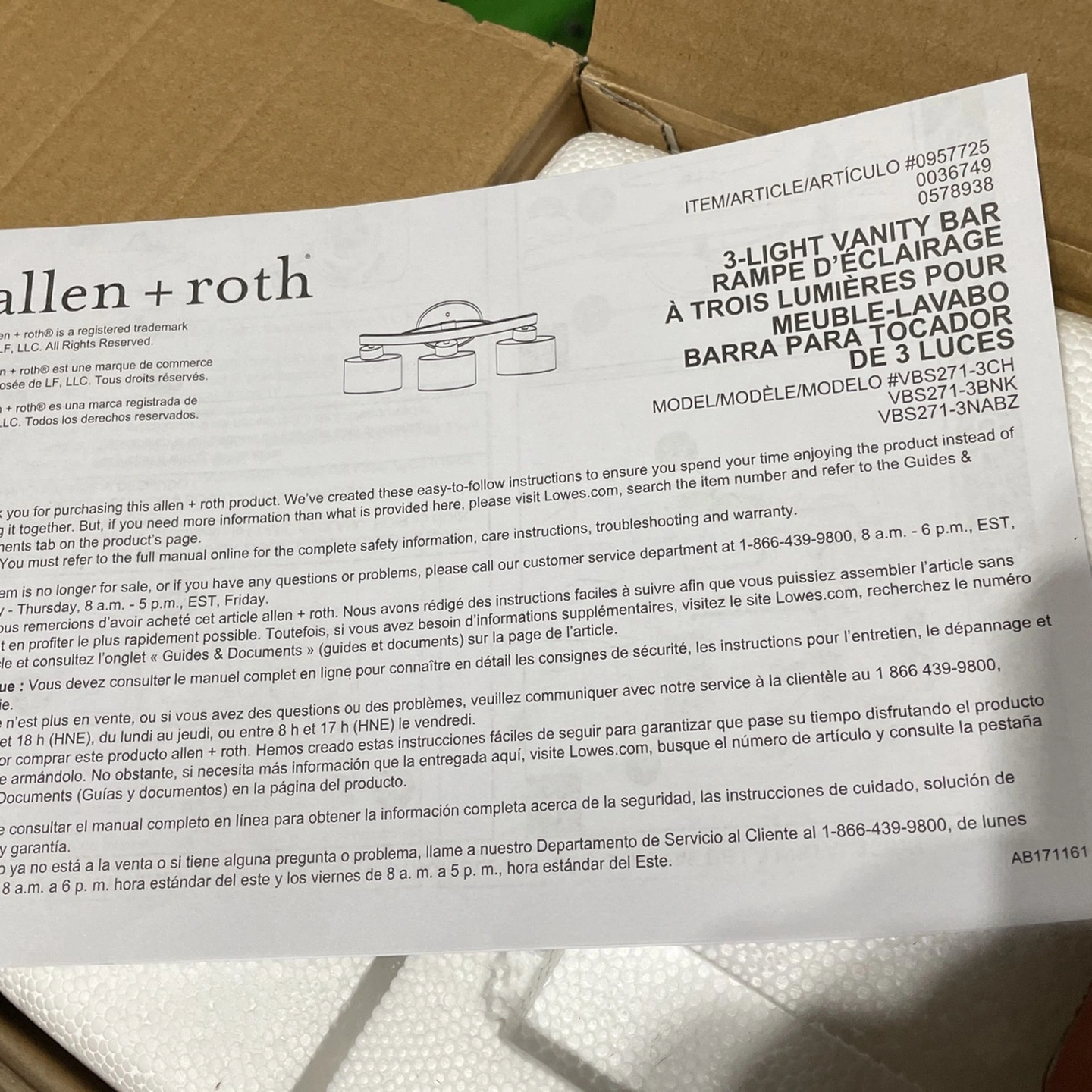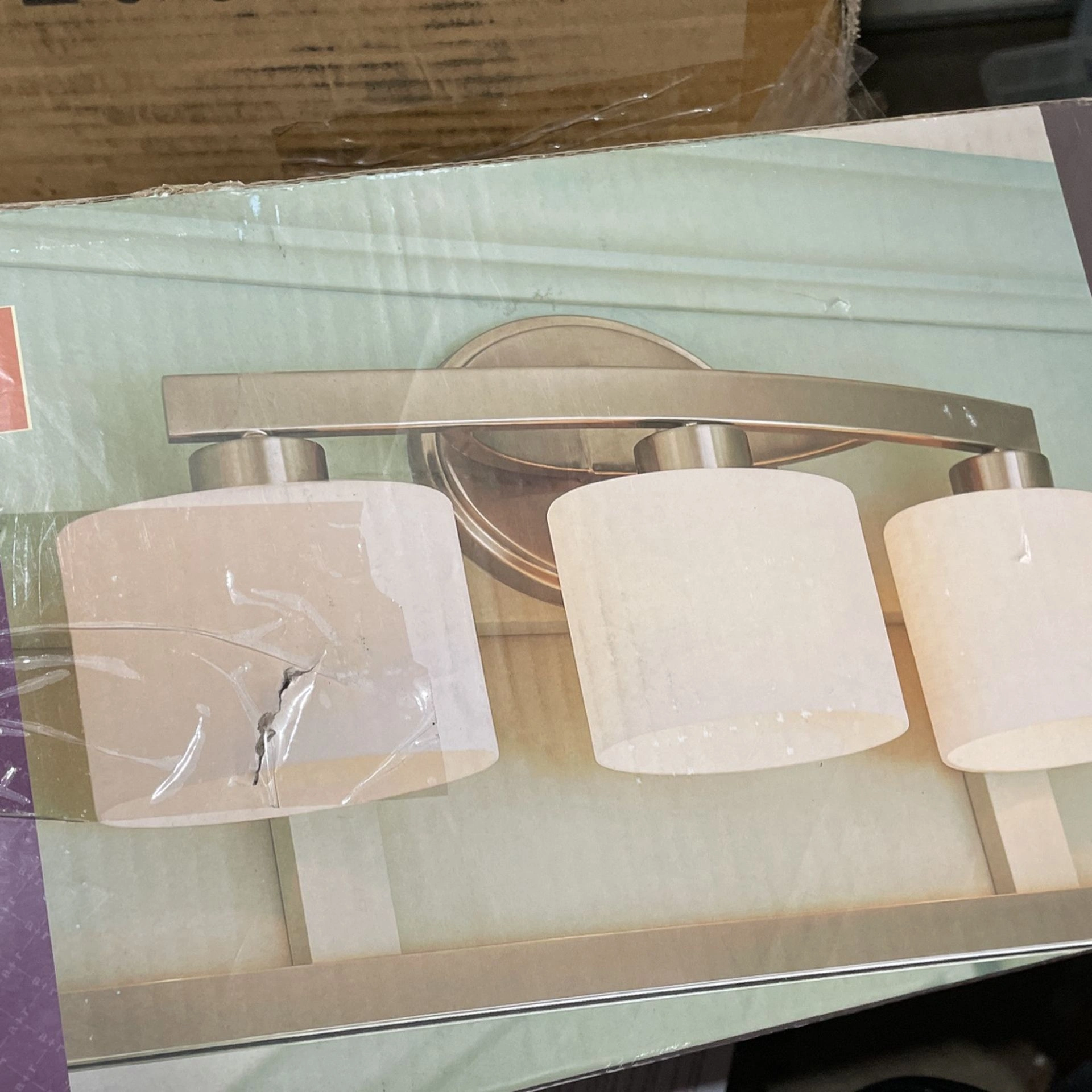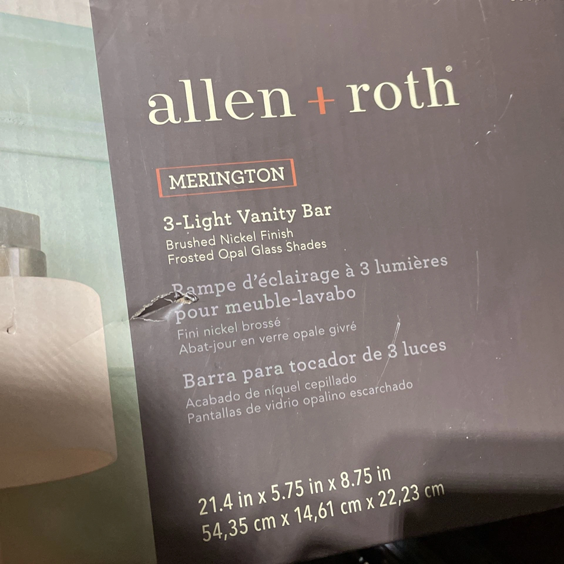 60Allen + Roth Vanity Light Fixture MERINGTON 3-Light Vanity Bar Brushed Nickel Finish Frosted Opal Glass Shades 21.4 in x 5.75 in x 8.75 in 54,35 cm x 14,61 cm x 22,23 cm Color: Nickle Type: Vanity Light Brand: Allen & Roth