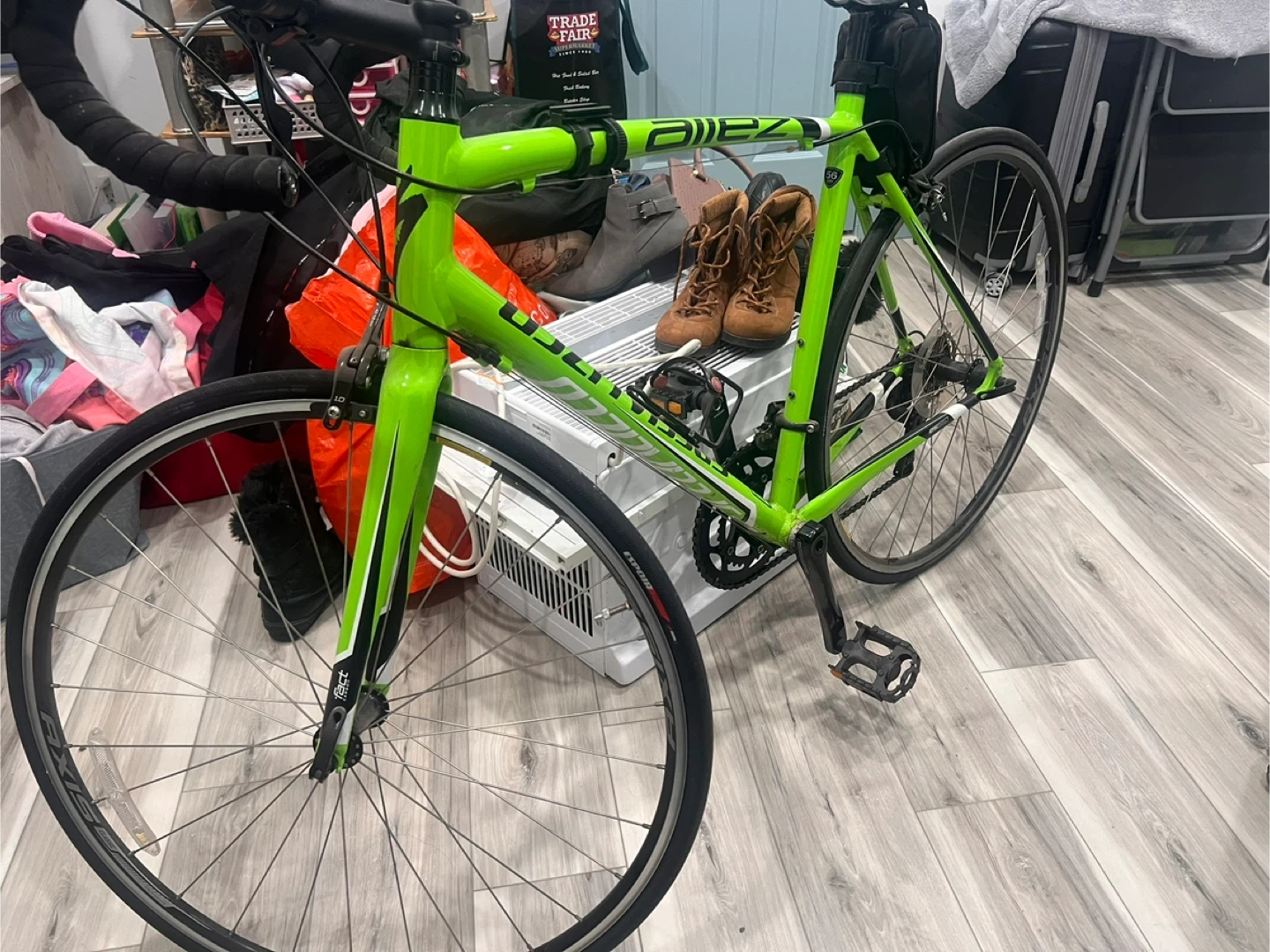26Selling an Allez road bike in a vibrant green and black color scheme! It appears to be in good condition and ready for some rides. Perfect for anyone looking to get into road cycling or upgrade their current bike. En muy buenas condiciones