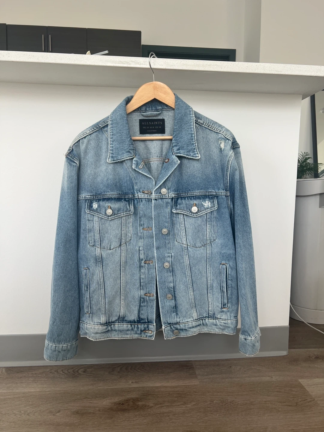 60I'm selling an Allsaints denim jacket in size 38. It's in great condition and ready for a new home! It's made in Turkey.