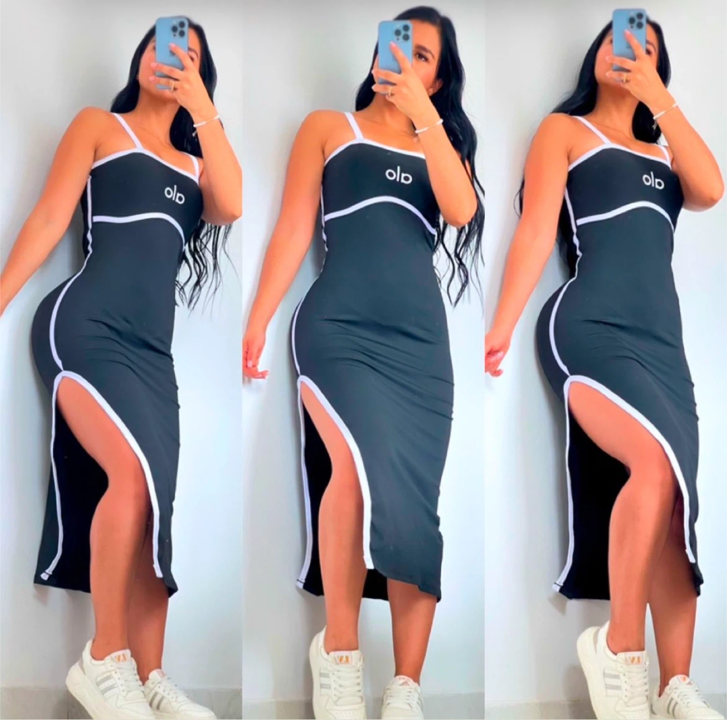 This is a black Alo Yoga dress with white trim. It's in great condition and ready for a new home!