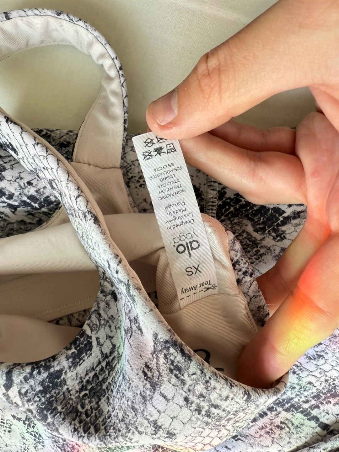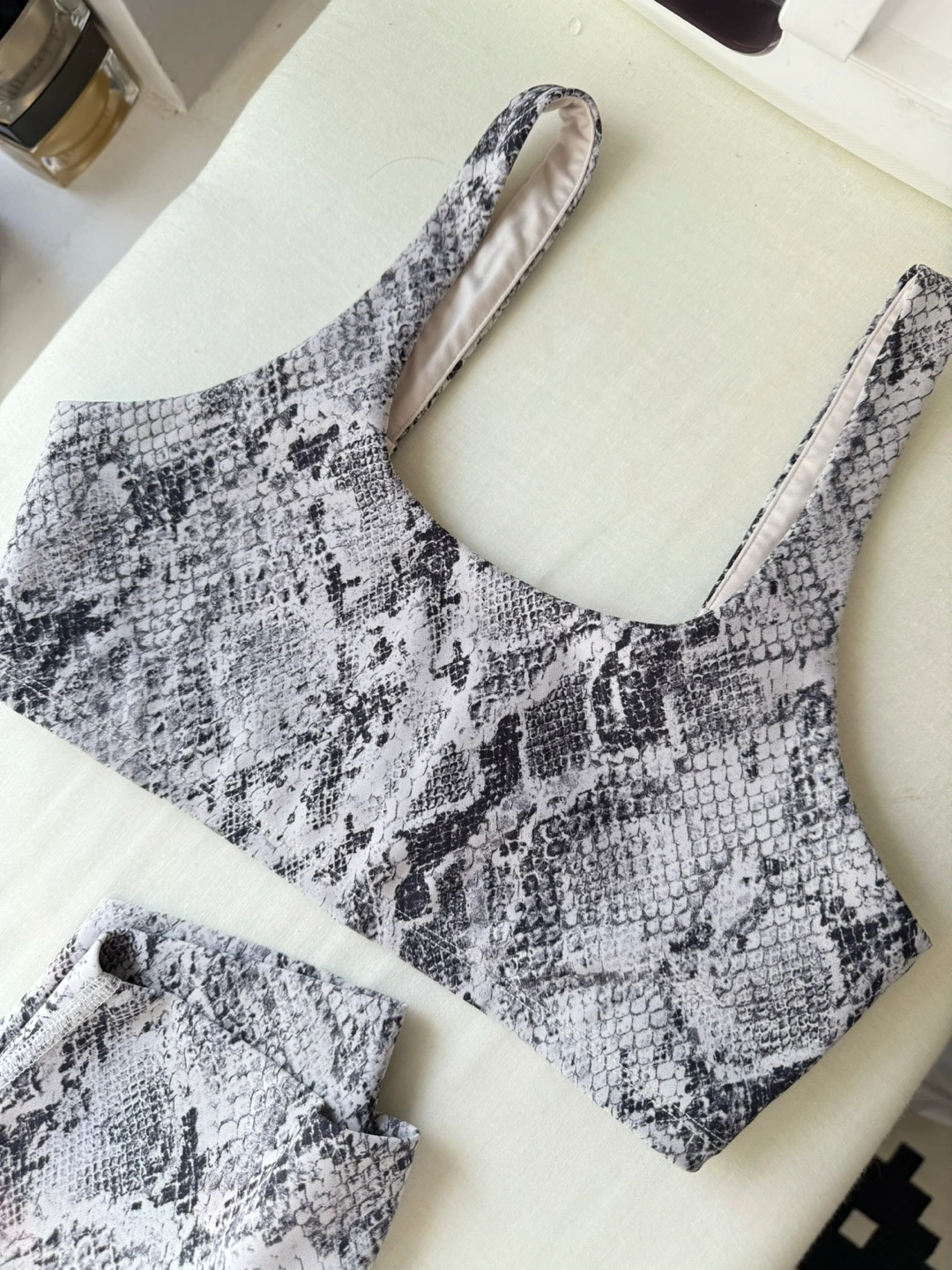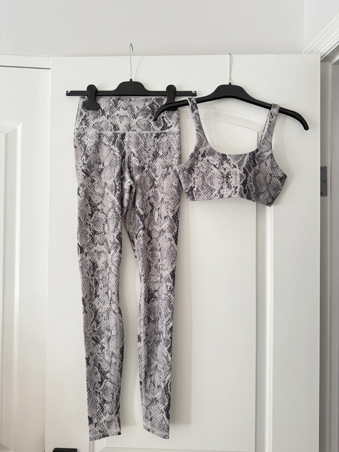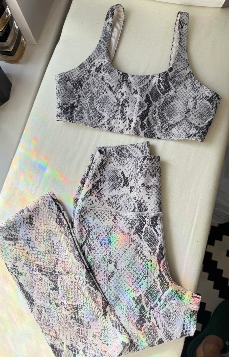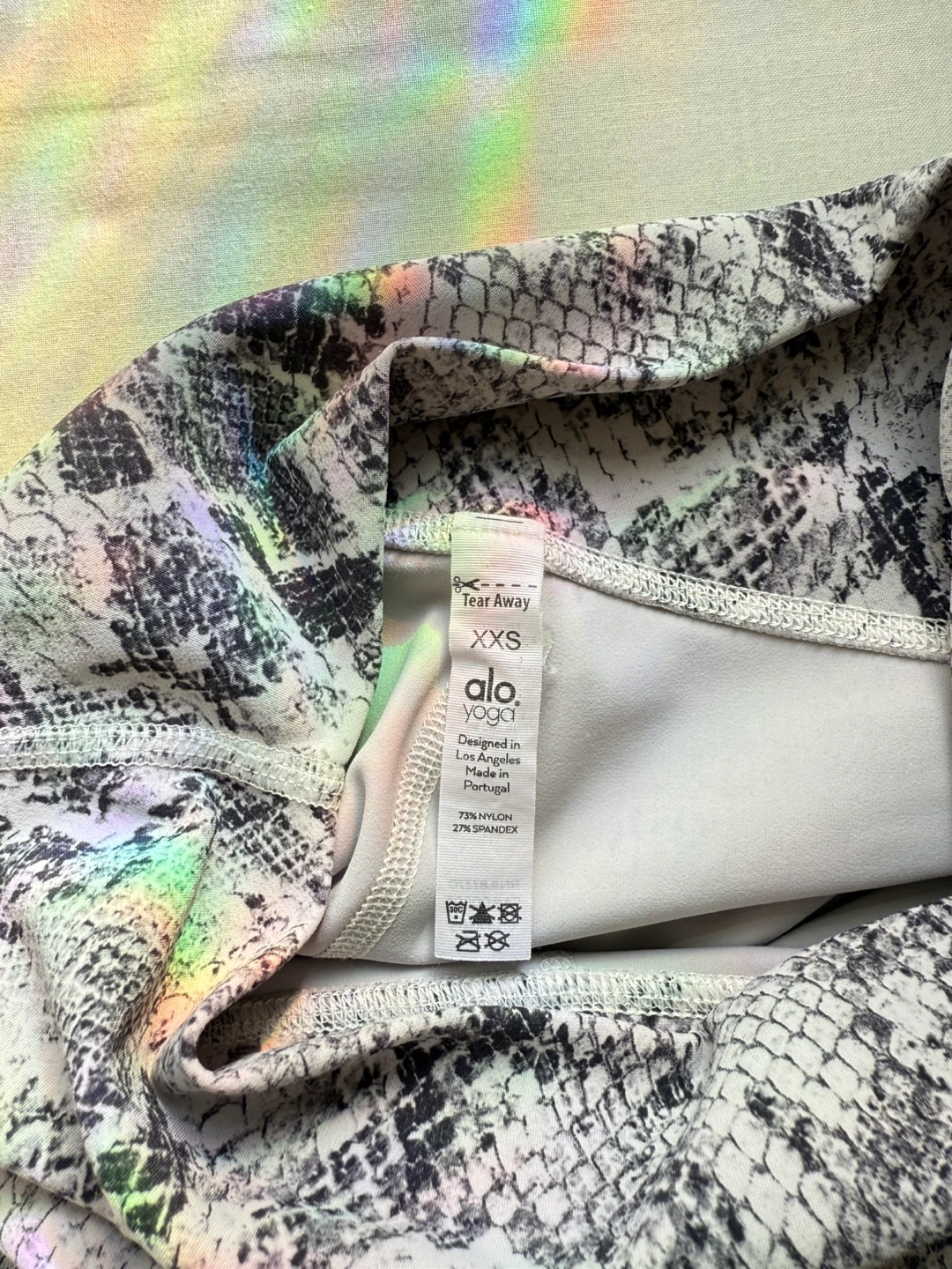 18Alo Yoga Vapor Snakeskin Top and Leggings Size XXs 73% nylon, 27% spandex Very good condition