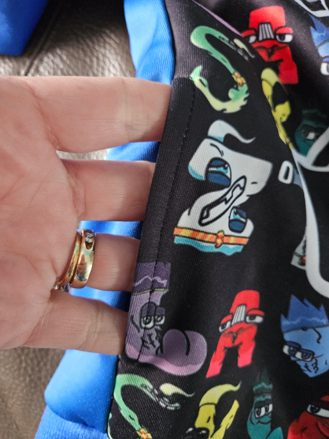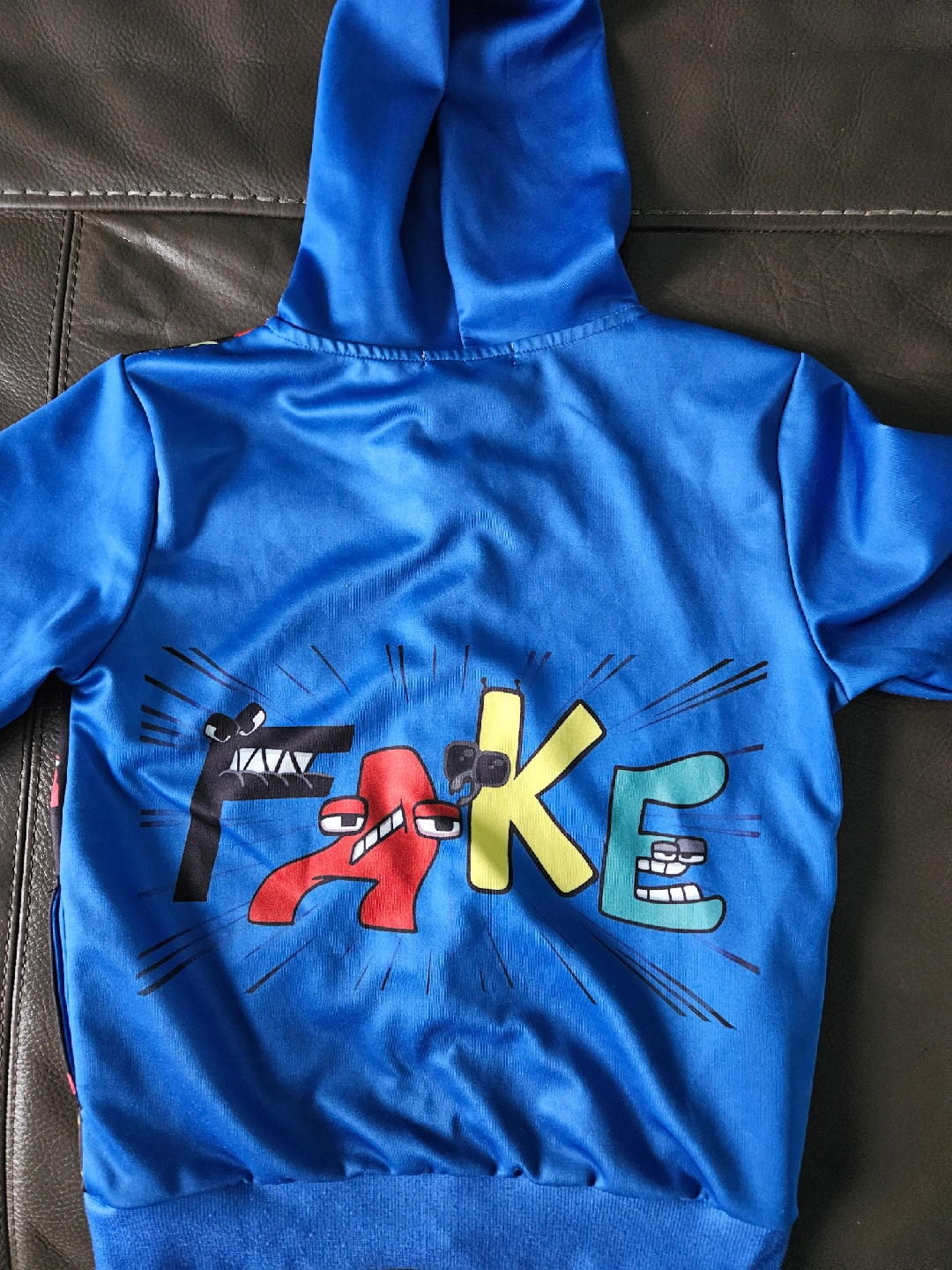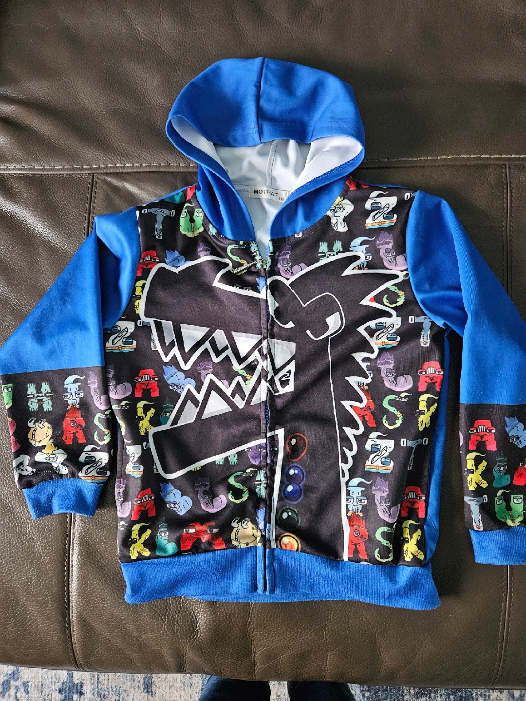 36Selling a cute Mothaf kids' hoodie! It's blue with a fun alphabet lore design on the front and back. The size is 130.