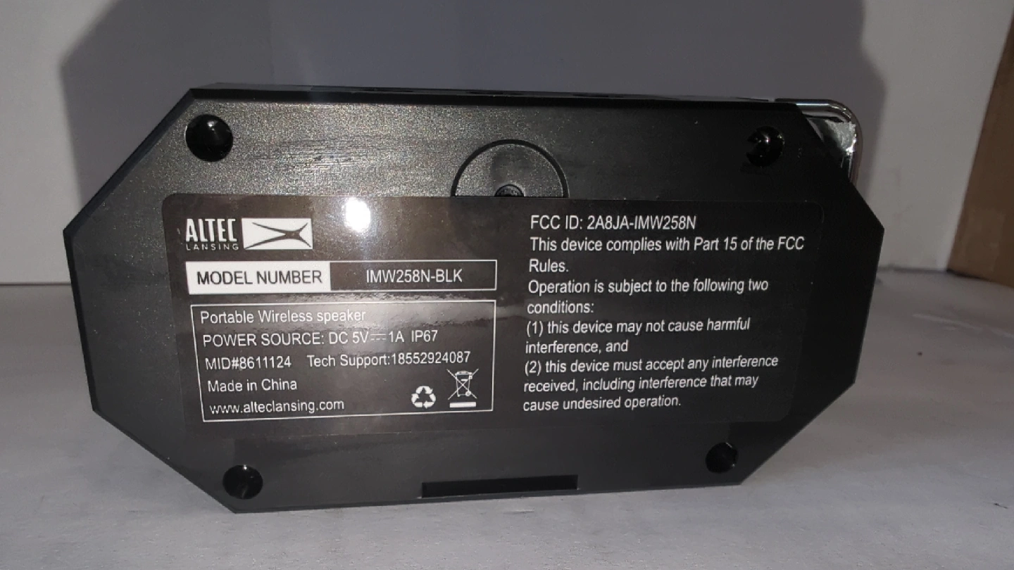 Selling an Altec Lansing portable wireless speaker. The model number is IMW258N-BLK. This speaker is in great condition and ready to bring the tunes! It's powered by DC 5V-1A and is IP67 rated. We offer layaway Ask for Alonso Message me for location