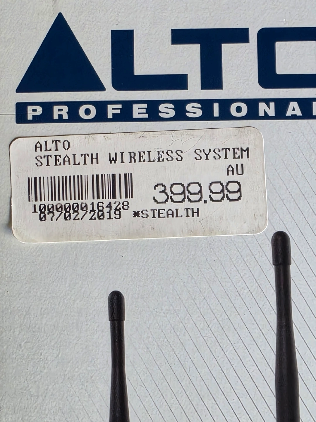 10Selling an Alto Professional Stealth Wireless System. It comes with the box and all the components shown in the pictures. The original price was $399.99 AU. This is a stereo wireless system for active loudspeakers.