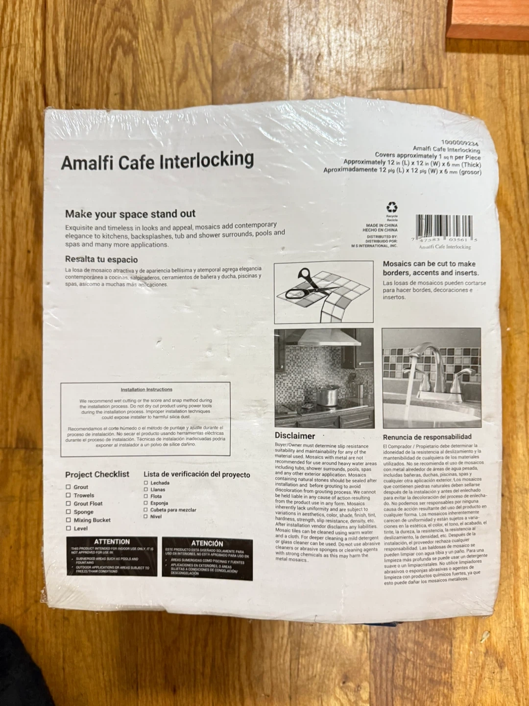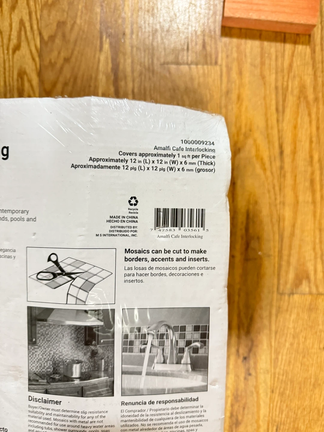 165This is a box of Amalfi Cafe Interlocking mosaic tile. It covers approximately 1 sq ft per piece I have 4 pc
