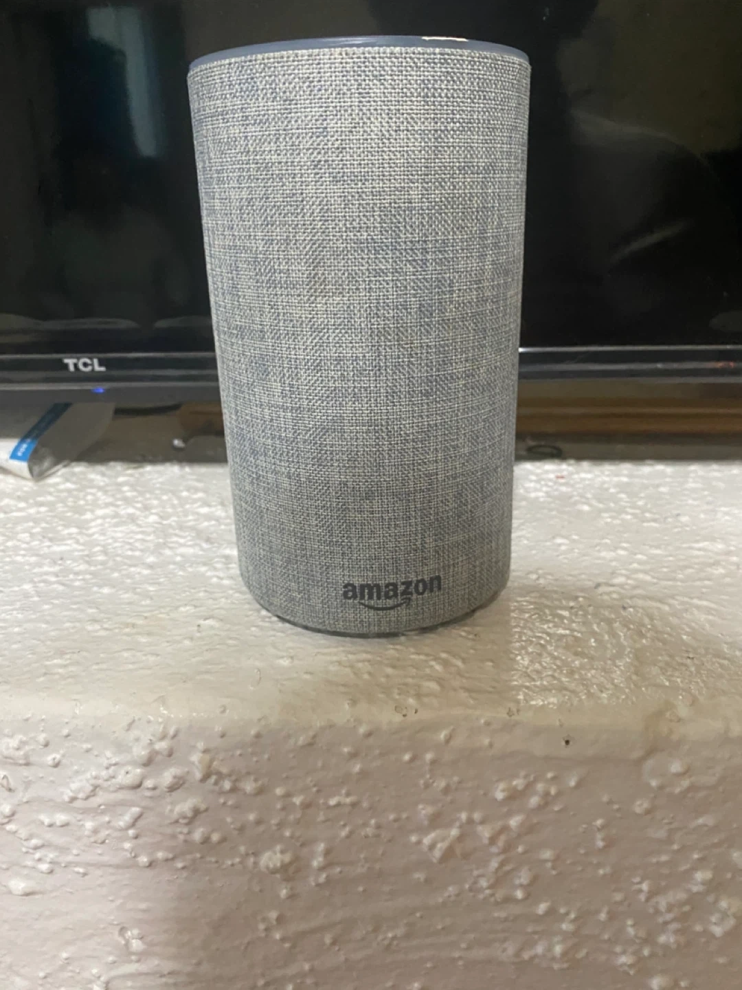 Selling an Amazon Echo 2nd Generation in gray. It comes with the charger. It has some scratches on the top.