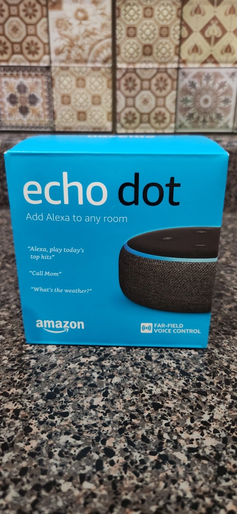 Smart speaker with Alexa. Compact design. Far-field voice control. Add Alexa to any room. - New in box and never opened! - Speaker uses your voice to control anything attached to it and Alexa technology. ex....Lights, tremostat,door locks, TV, music....