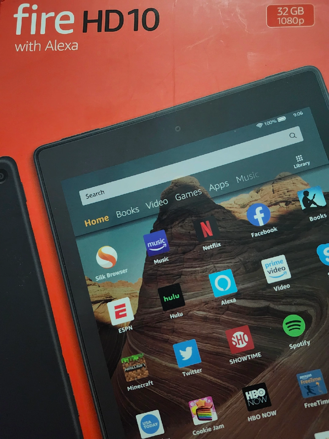 Selling an Amazon Fire HD 10 tablet with 32GB of storage. It features a brilliant 10.1" 1080p Full HD display (1920 x 1200) and a powerful octa-core processor. Enjoy widescreen entertainment with vivid Full HD and Dolby Atmos sound. It also has Alexa built-in!