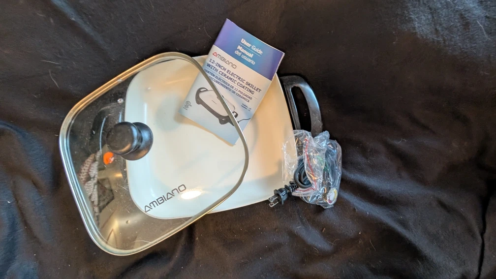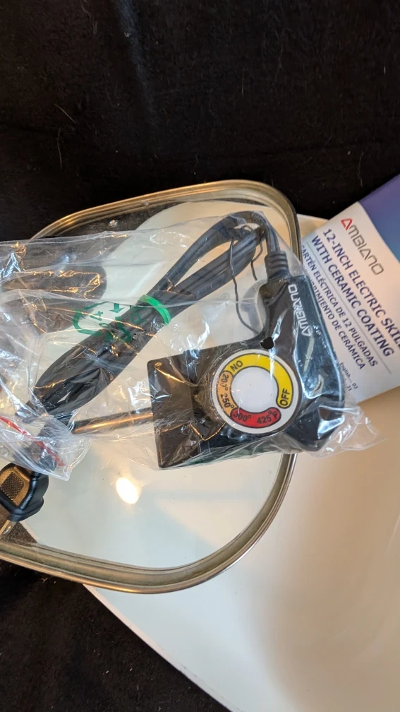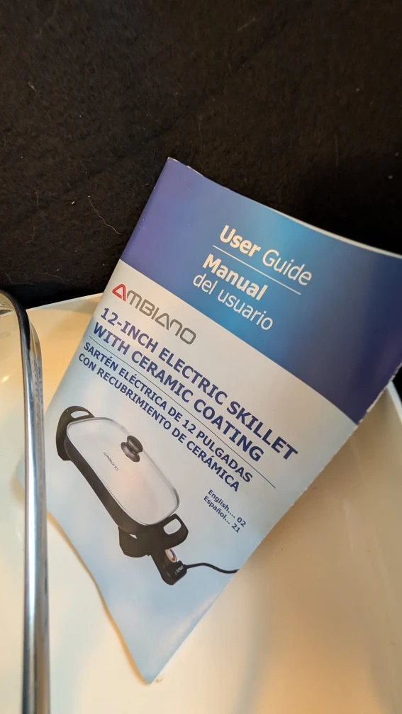 10I'm selling an Ambiano 12-inch electric skillet with ceramic coating. It comes with its user guide and the original temperature control unit still in its packaging. This skillet is perfect for cooking a variety of meals with easy cleanup thanks to the ceramic coating!