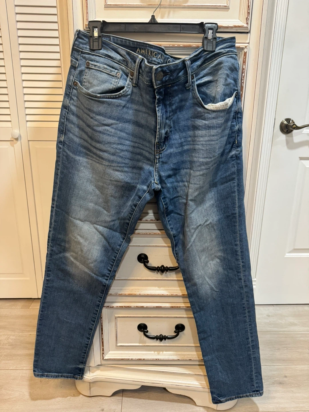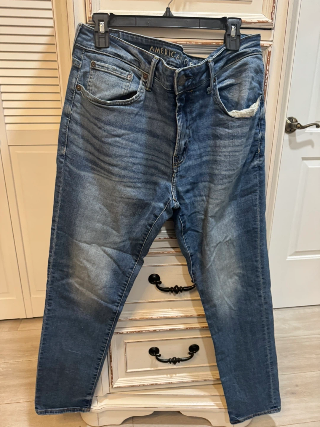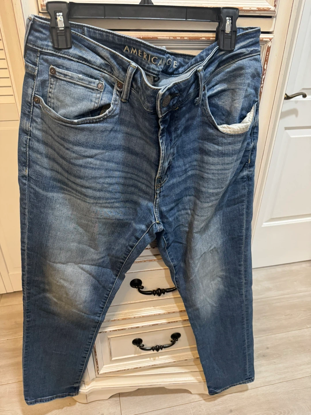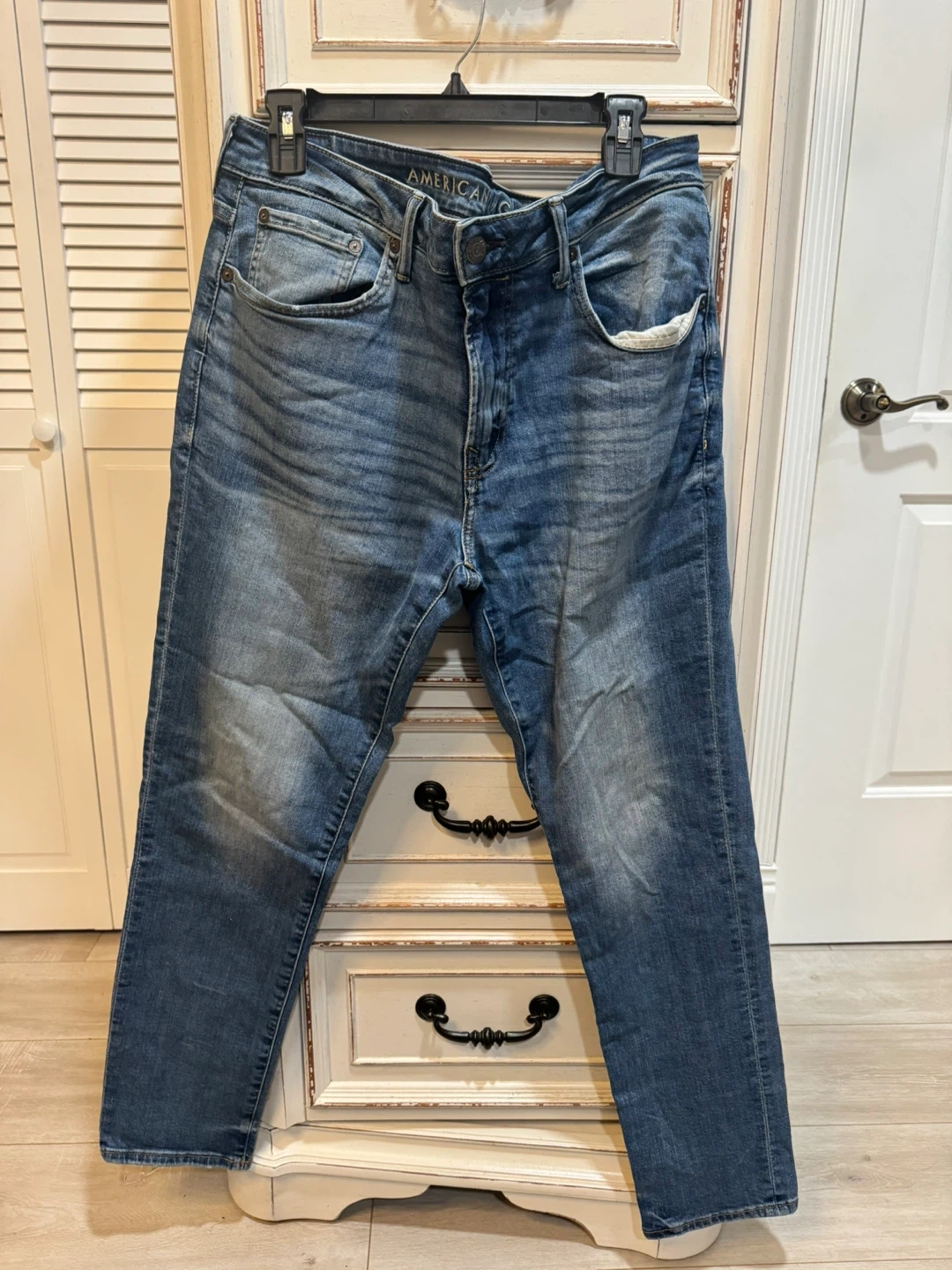 Selling a pair of American Eagle jeans in good condition! They are a stylish blue wash. Feel free to ask any questions!
