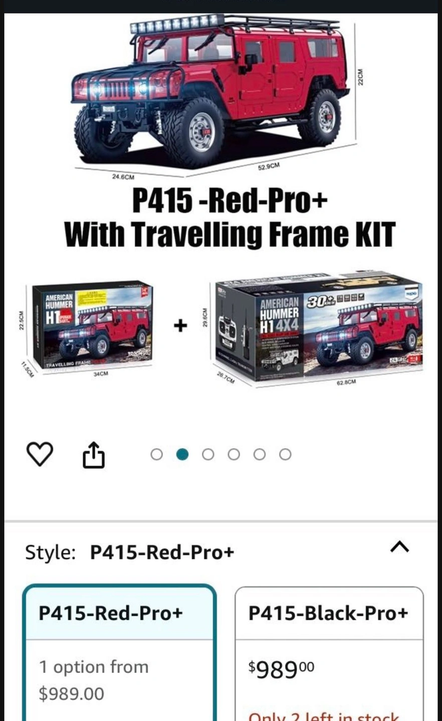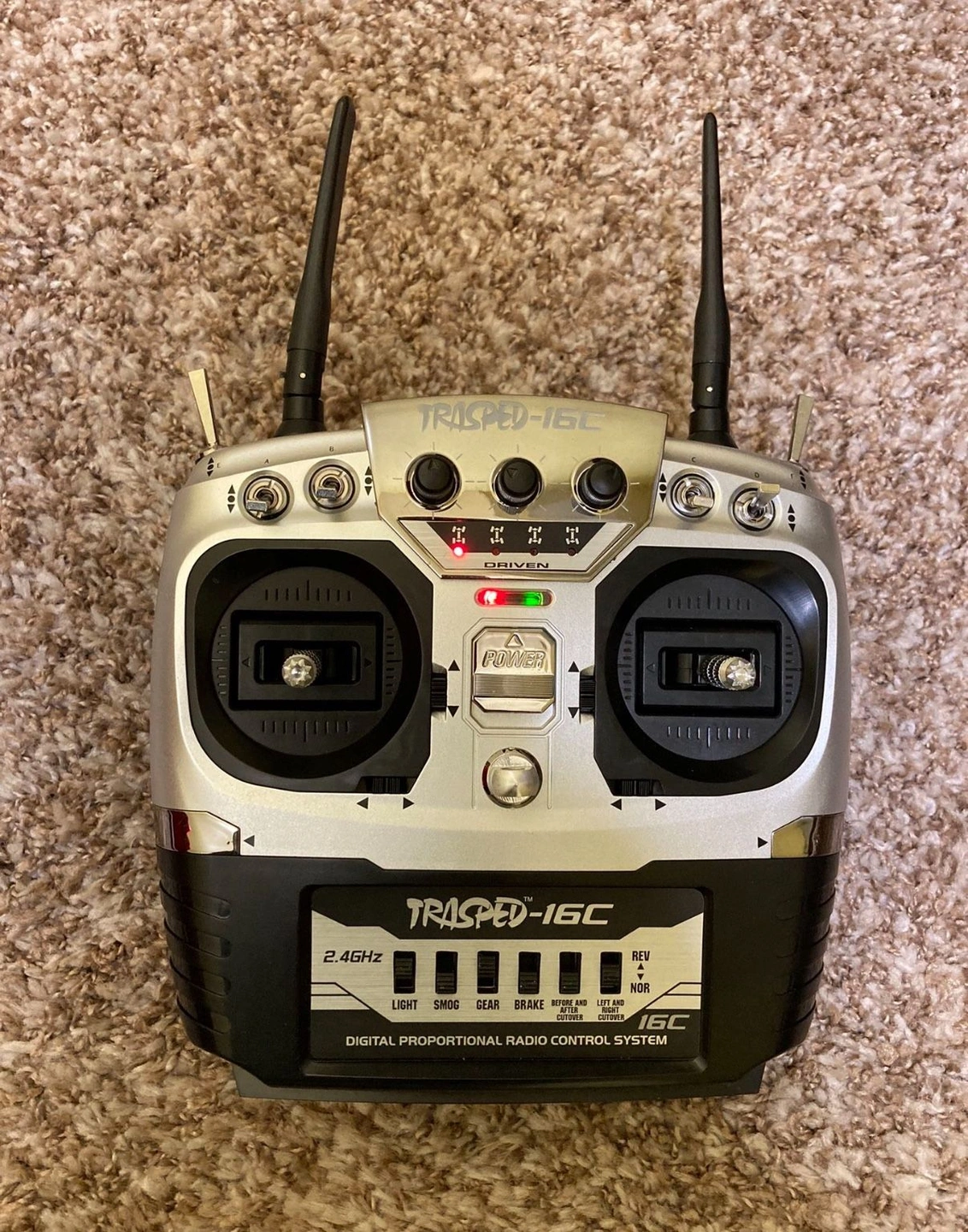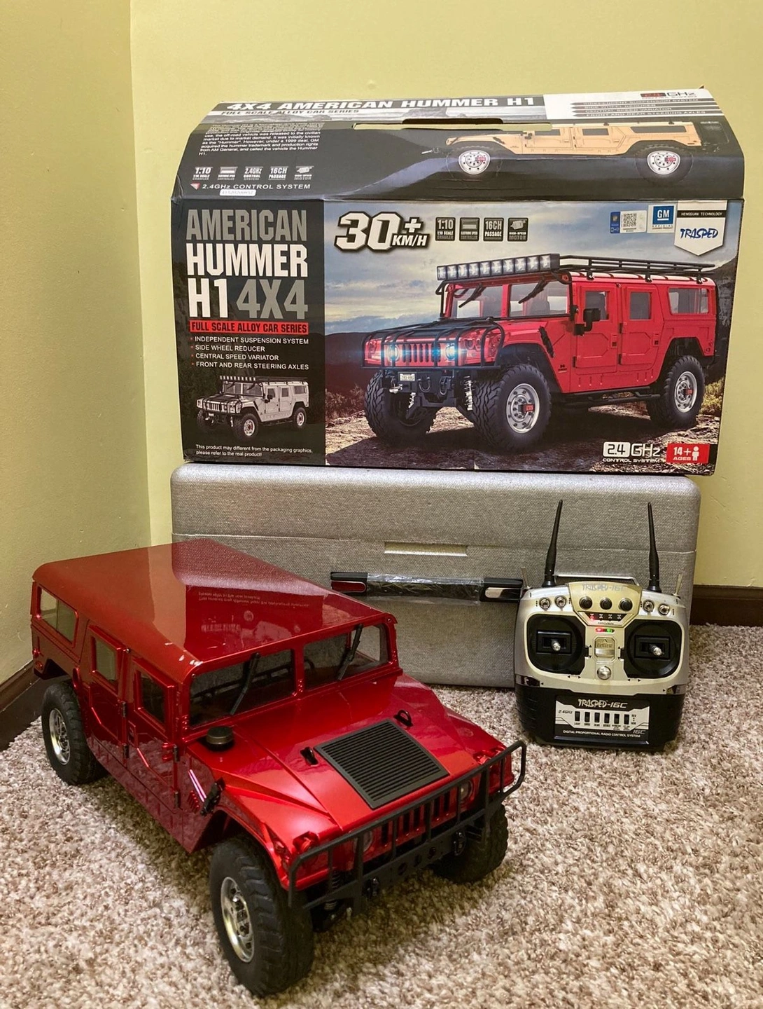 15Brand new, used only once. Bought as a gift for my son, but he wasn't interested. Comes with the original box, case, and all original contents. Battery not included. Product introduction: Brand :TraSped ITEM:P-415 Upgrade Age: Above 14 Car Size:529*246*220mm Wheelbase:329mm Track:225mm Wheel diameter:100mm Wheel width:38mm Box Size:628mm*208mm*301mm Functions: Full-scale synchronous remote control functions such as forward, backward, braking, left and right turning. Maximum climbing angle: low gear: 45 Degree , high gear:35 Degree Maximum fording depth: 50mm Maximum speed: 30km/h Maximum steering angle of front wheel: 30 Degree Maximum pass ditch width: 80mm Vehicle transmission ratio: H=15.3 L=28.02 Front cover wave angle: 90 Degree Tail box wave angle: 58 Degree 2.4G 16ch full-scale synchronous remote control system Four-wheel drive low speed, high speed can be remotely changed ESC with brake/no brake function switch 9g gear steering servo can be remotely operated to switch gears Full vehicle enclosed gear dustproof transmission 2-speed medium gear case The front and rear axle differentials can be manually locked The whole vehicle adopts double wishbone independent suspension system High torque side wheel speed reduction, reduction ratio is 1:1.4 Large stroke buffer hydraulic shock absorber, simulation rubber tire Simulation metal trapezoidal frame, metal chassis of the whole vehicle Variable stroke universal metal shaft transmission system High-precision ABS plastic car shell, high-simulation interior structure The hood, door and tailgate can be opened Packing list: 1* 1/10 Finished Truck RTR 1* Sound/Light System(Inside car) 1* Transmitter(16CH 2.4G) 1* English Manual 1* Accessories Bag Warnings Use under direct adult supervision only. Age recommendation: 14+ Not suitable for children under 36 months of age. Choking hazard due to small parts. Features & details With Sound and Light,With Travelling Frame 1/10 Scale Crawler, Metal chassis, Closed dustproof 2-speed medium metal gearbox Super Shock Absorber Differential Lock Four-Wheel Drive Mode,High-Speed Motor Color: Red Type: Truck Brand: TraSped