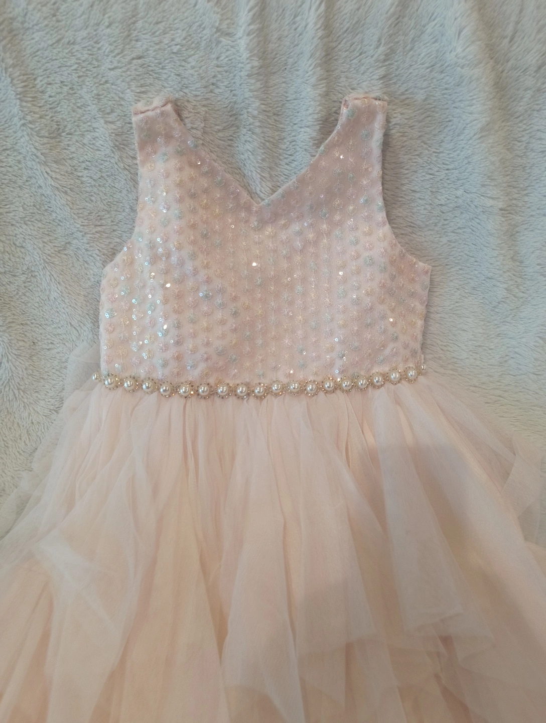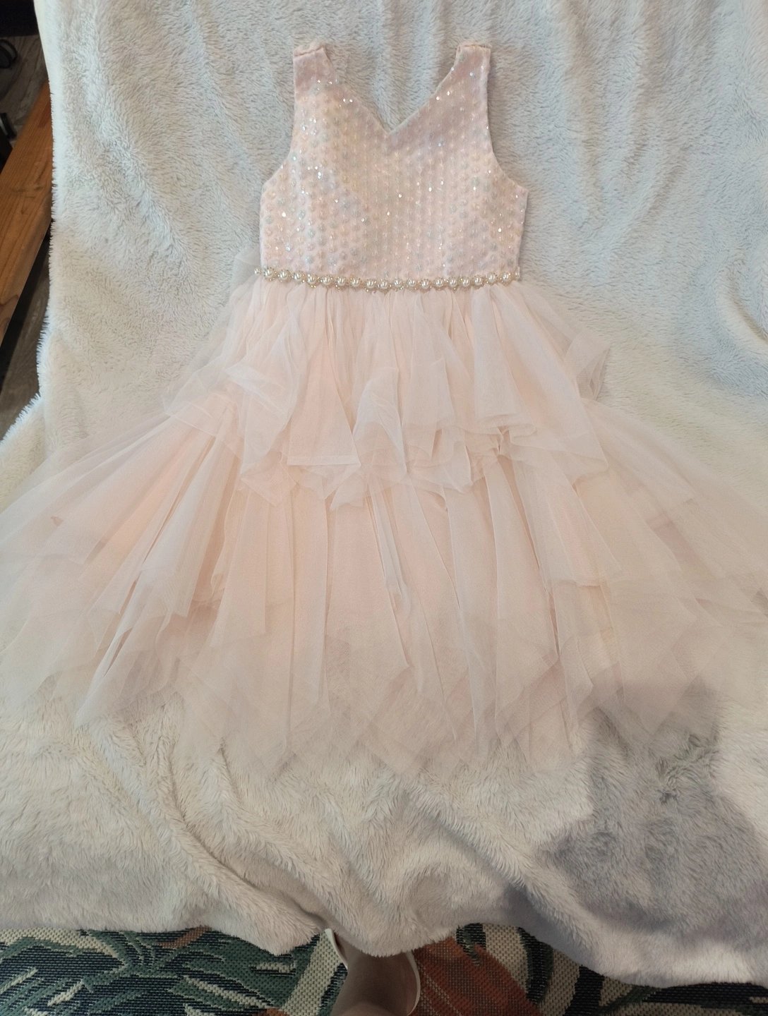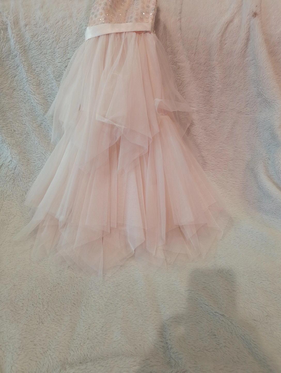65Beautiful American Princess dress in a size 10! It's a light pink color with a tulle skirt and some sparkly accents on the bodice. Perfect for a special occasion!