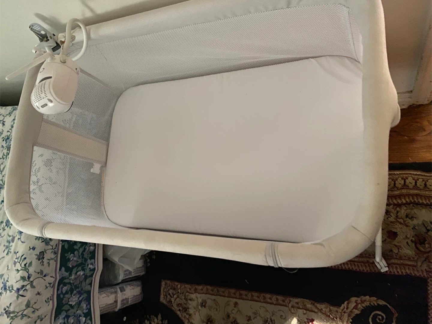 60Selling an AMKE bedside sleeper in good condition! It's easy to set up and offers extra comfort for your little one. The breathable mesh fabric ensures good airflow, and it's suitable for babies aged 0-6 months, with a maximum weight of 20 lbs