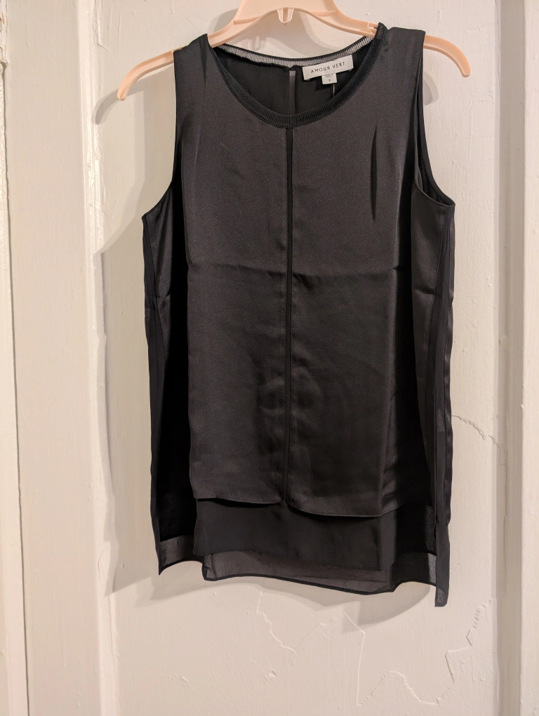 Selling an Amour Vert Zola top in black, size small. It's in great condition and originally retailed for $150 New with tags Bra coverage, perfect for work or night out Length front, 24.5" from shoulder Length back, 26.5" from shoulder Chest 38.5" circumference Retails 150.00 Content 100 percent poly shell and lining Hand wash cold