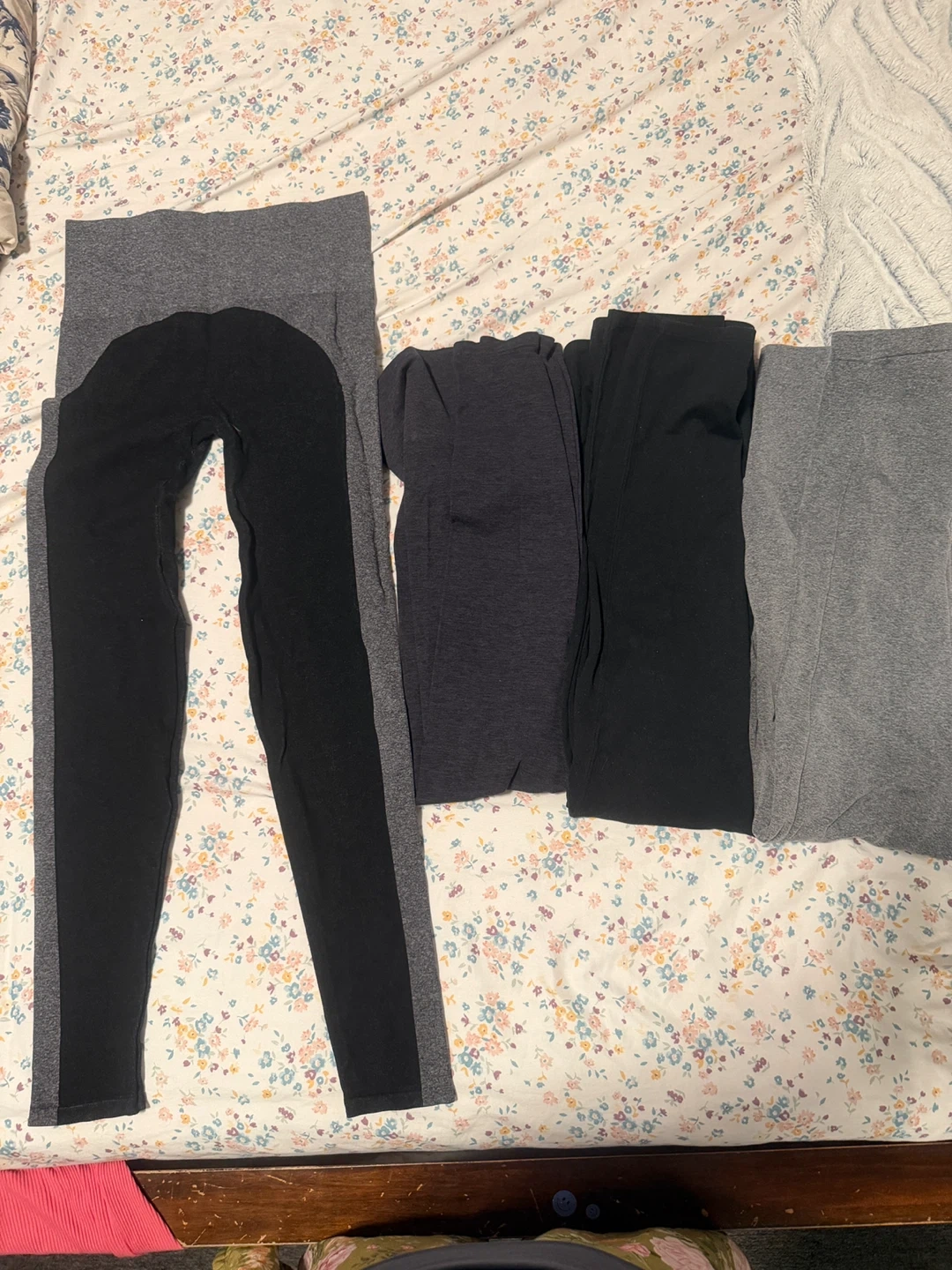 Selling a set of four leggings in various shades of gray and black. They appear to be in good condition and ready for a new home! They are original spanx so they’ll snatch your stomach and thighs. If you want only 1-2 just let me know, goes for $6 each.