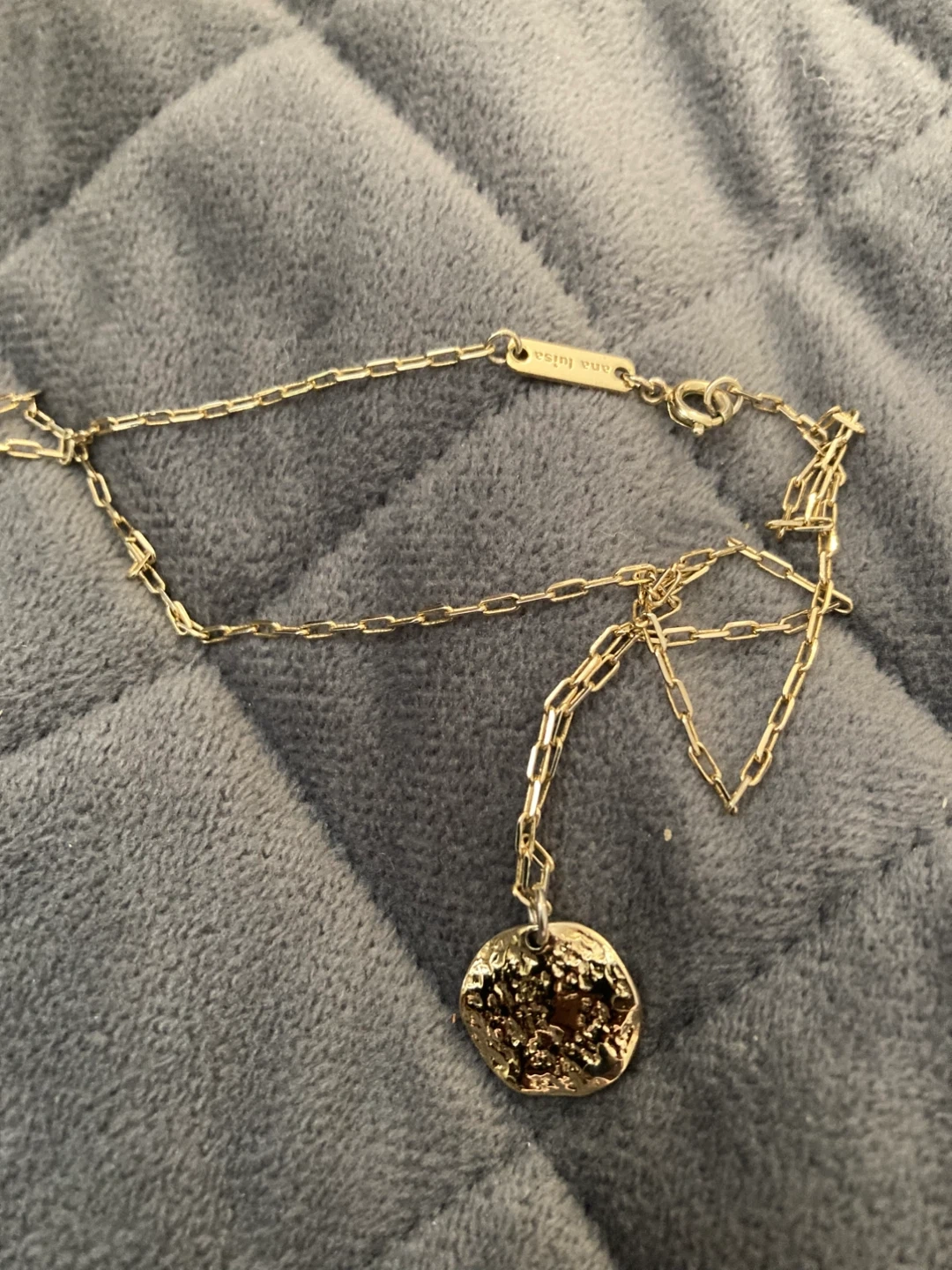 27Selling a beautiful Ana Luisa Tilda pendant chain necklace! It's a gold-colored, layered necklace with a unique textured pendant. Originally bought for $149