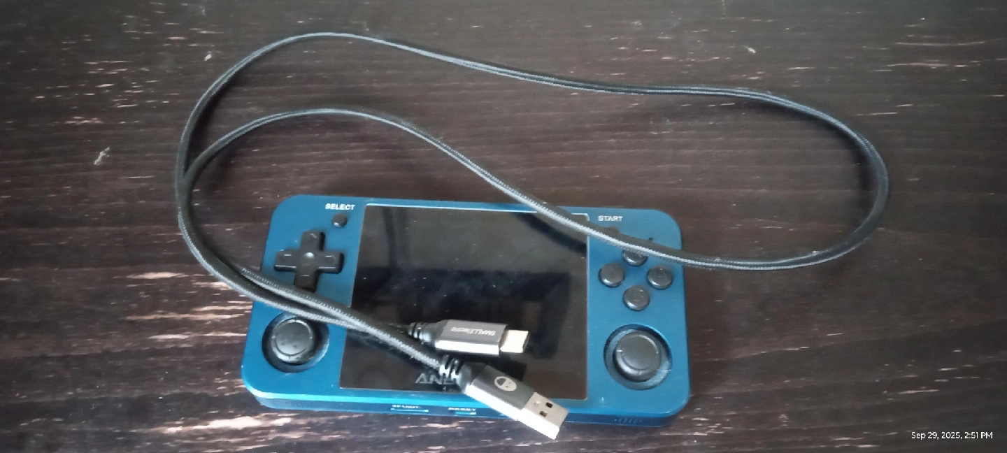 Selling a blue Anbernic handheld game console. It's in good condition and ready for some retro gaming fun! Comes with a charging cable if you want it you have to come to me Cash only