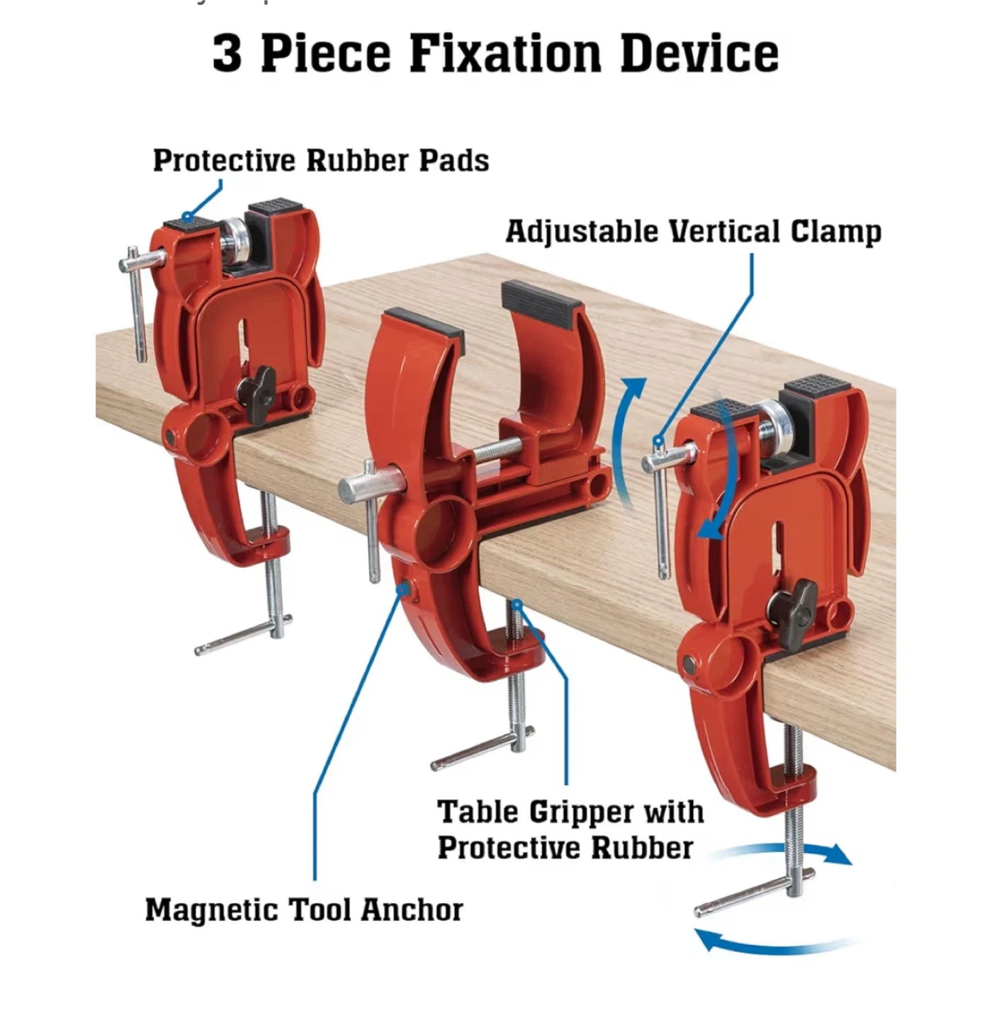 106I'm selling a set of ANCHOM ski and snowboard vises! These are great for tuning, repairing, and waxing your skis or snowboards. The set includes three pieces and features protective rubber pads, adjustable vertical clamps, and a table gripper with protective rubber. It also has a magnetic tool anchor. The center clamp is extendable. Opens from 4.3in to 1.4in. Wider Design. Retails for $79.99