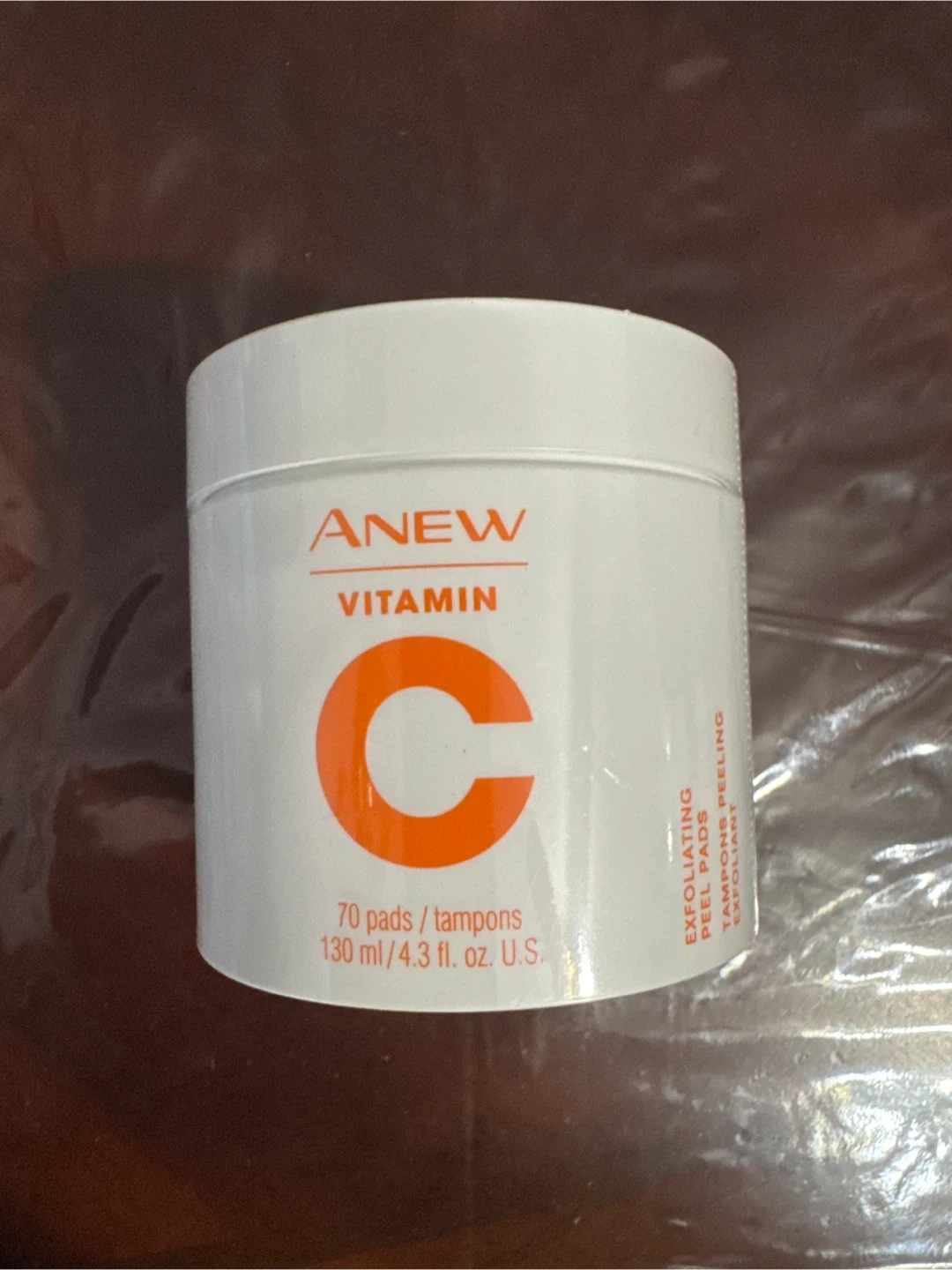 Selling a container of Anew Vitamin C Exfoliating Peel Pads. The container has 70 pads/tampons and 130 ml/4.3 fl. oz. of product