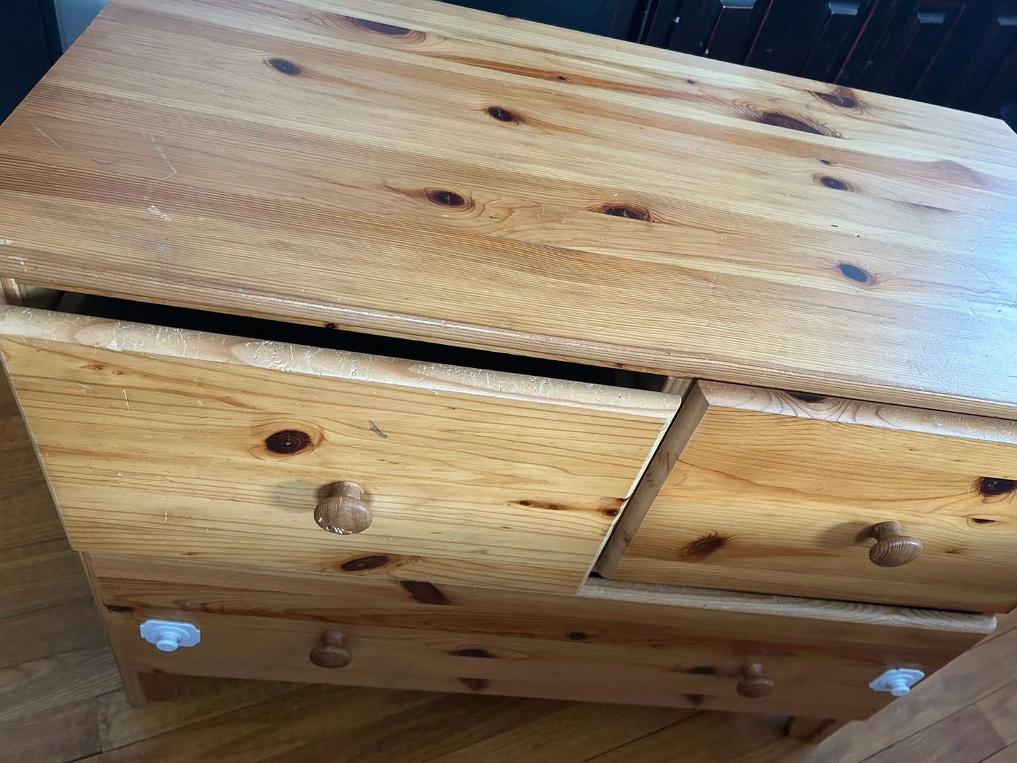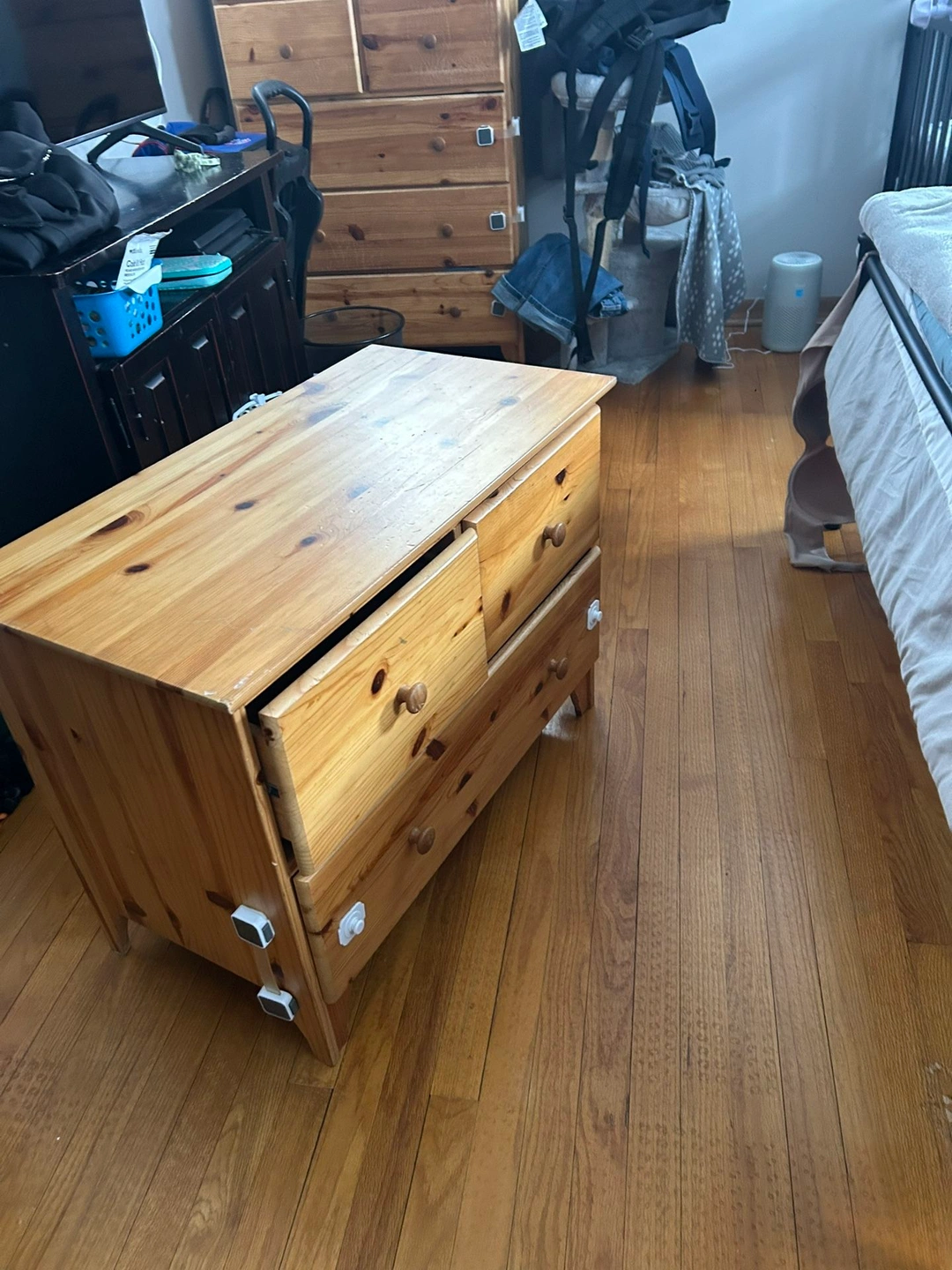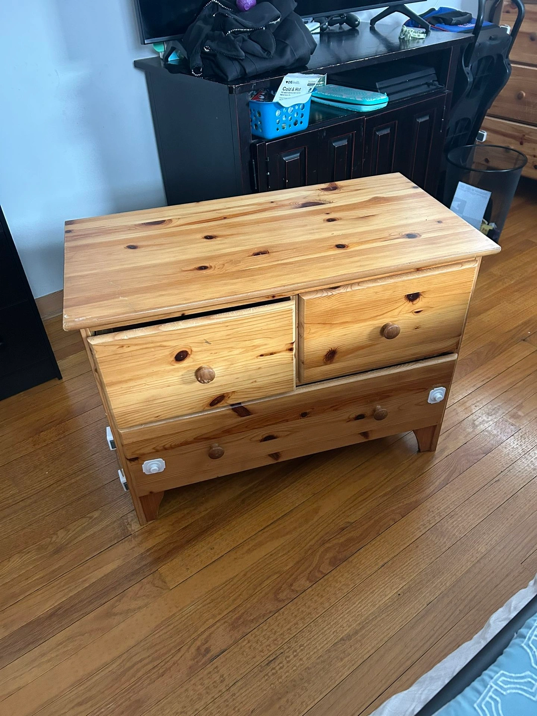 Short wooden dresser with 3 drawers. Still in pretty good condition, great for a kids room. Very sturdy and durable. First drawer doesn’t fully close all the way, the other two close fine. $30 or best offer. Will need to pick up. Cash sale only.