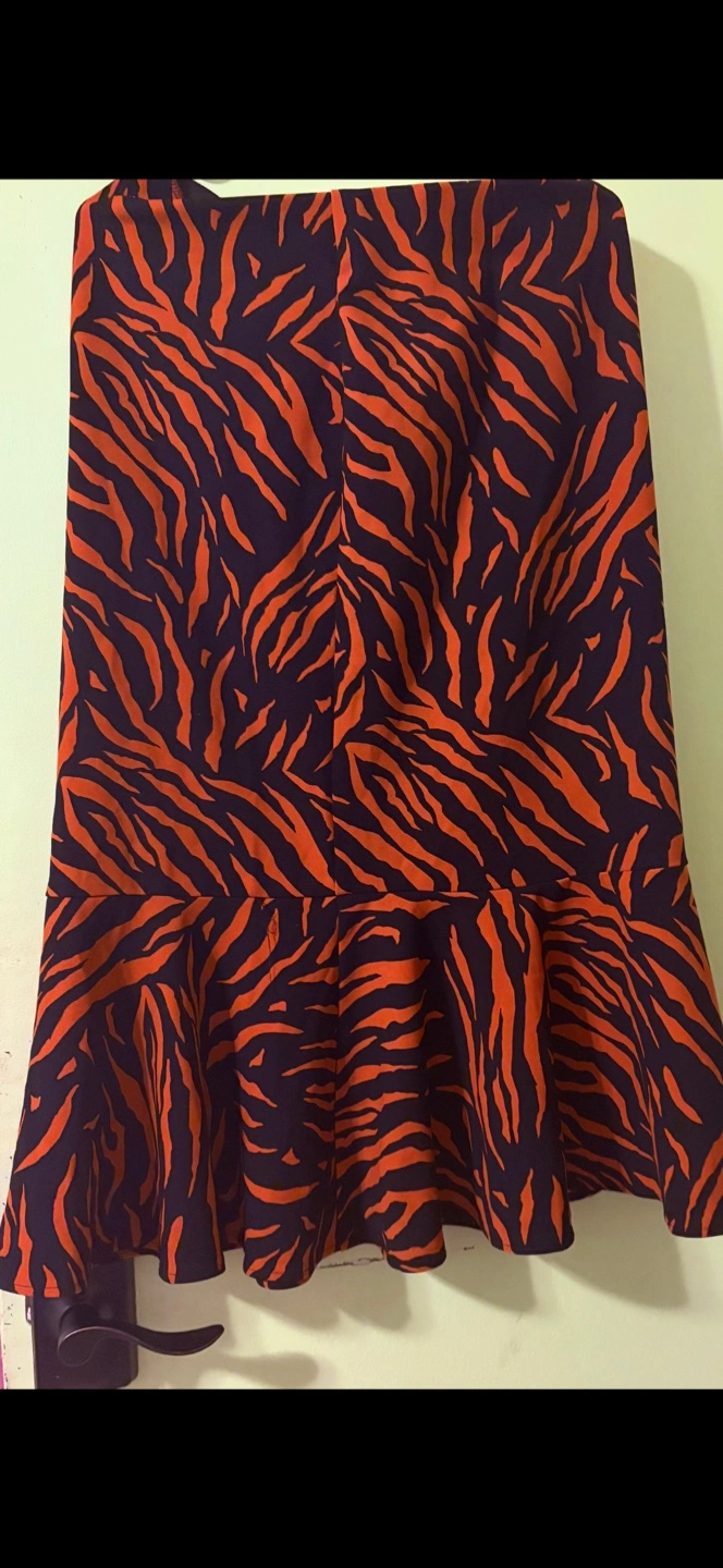 This maxi skirt features a bold animal print and a fun ruffle hem. It's perfect for adding a touch of wild style to your wardrobe!