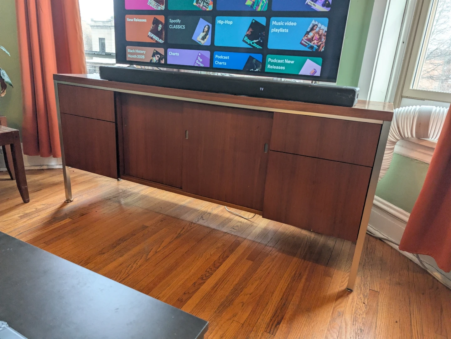 I have an excellent very solid piece of furniture credenza. This isn't like new cheap furniture. It's solid wood and very heavy and very sturdy. It has a good look and is multi-functional. I've been using it as a TV stand as you can see which has been great. It has great storage.