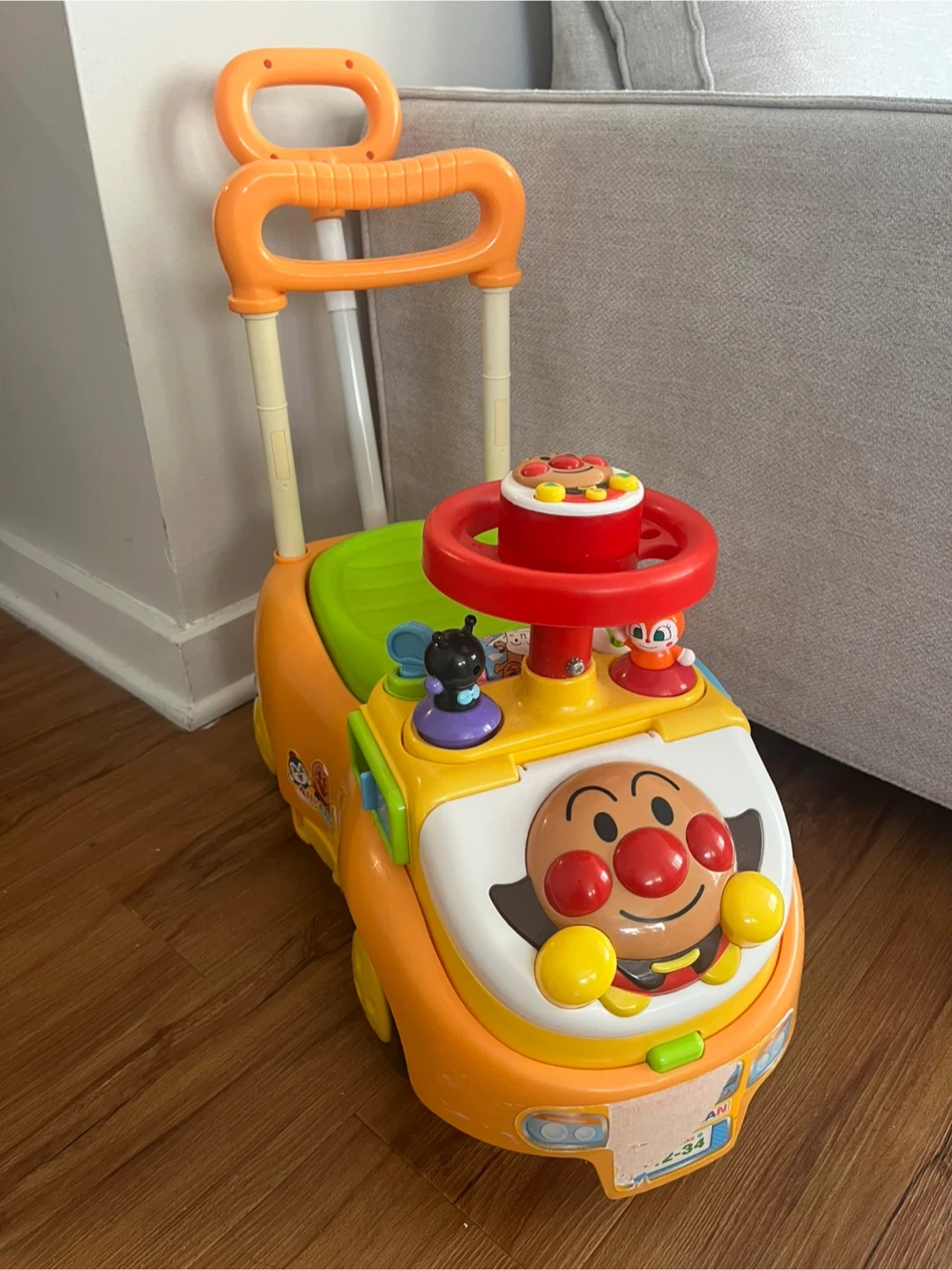 Selling a cute Anpanman ride-on car! Perfect for toddlers who love Anpanman and enjoy scooting around. There is storage space in the front trunk and under the seat. There are signs of use, such as peeling stickers, but the sound feature still works.