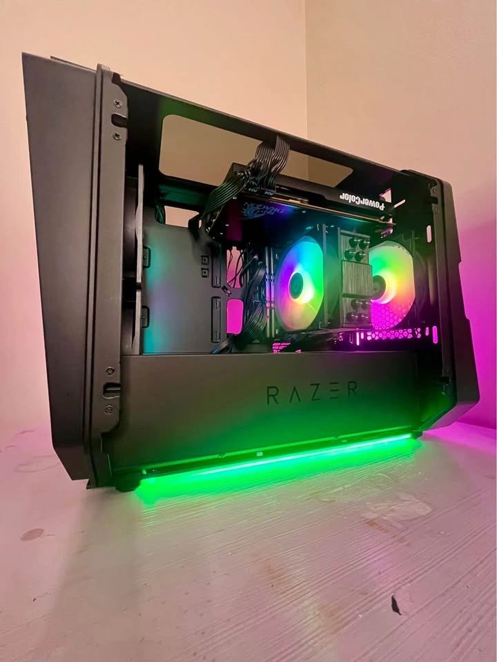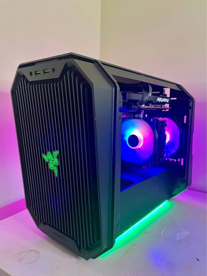 121Custom Built - Ready to Game! Here are the specs: Operating System: Pre-installed and Activated - Windows 11 Pro Boots straight into Windows - No setup required! Processor: AMD Ryzen 5 4500 Number of Cores: 6-core, 12-thread Graphics: PowerColor Red Dragon AMD Radeon RX 5700 XT RAM: 16GB Kit (2x8GB) 3200MHz Memory Type: TEAMGROUP T-Force Vulcan Z - DDR4 DRAM Storage: Patriot P300 1TB Gen3x4 NVMe SSD Motherboard: ASRock AMD B550M-ITX/AC Power Supply Unit: Rosewill VSB 750 Watts 80+ Bronze Case: Antec Cube designed by RAZER* Additional Features: OS Installed: Yes Ethernet/WiFi: Yes Bluetooth: Yes $695 Cash Only - Price is negotiable* Absolutely No Trades* For the right price, will include a Free Gaming Keyboard!