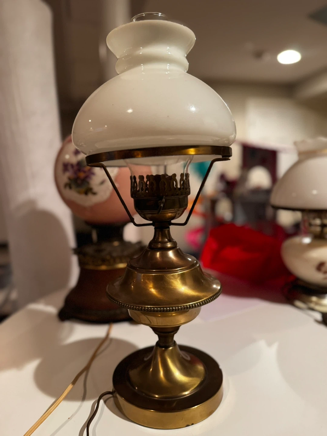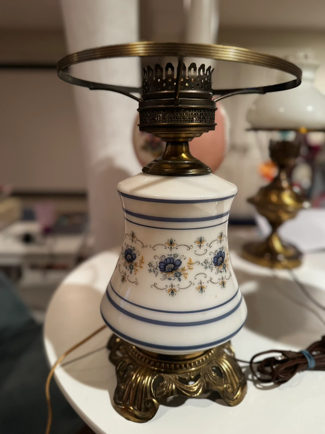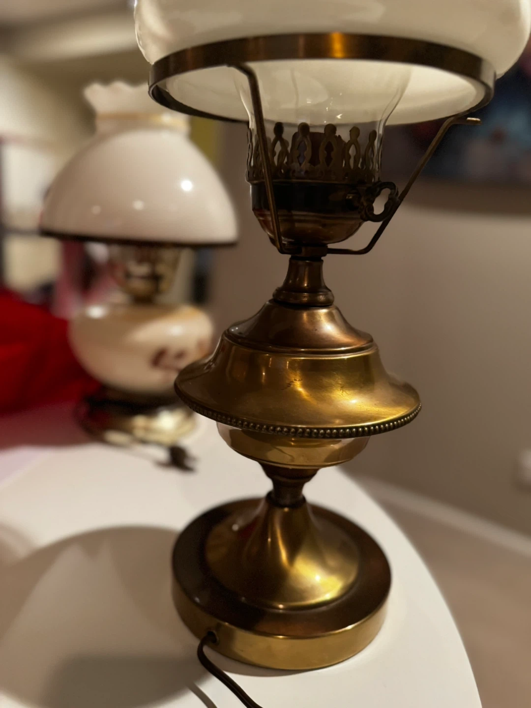 Selling a beautiful antique brass hurricane lamps! It features a clear glass chimney and a classic design. These lamps would make a lovely addition to any home decor. The lamps are in good condition and ready to use!