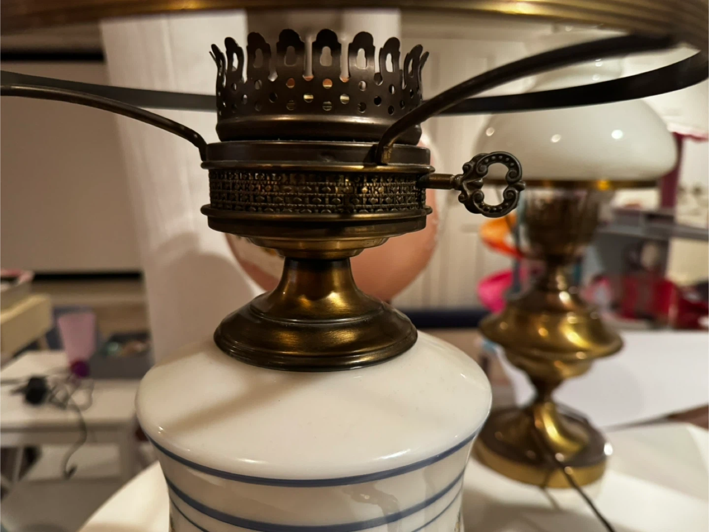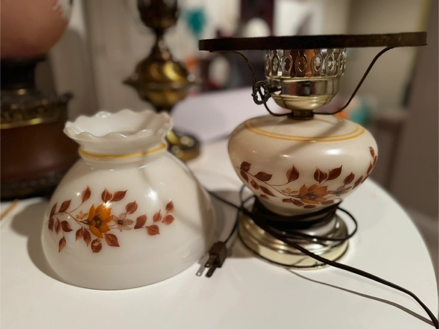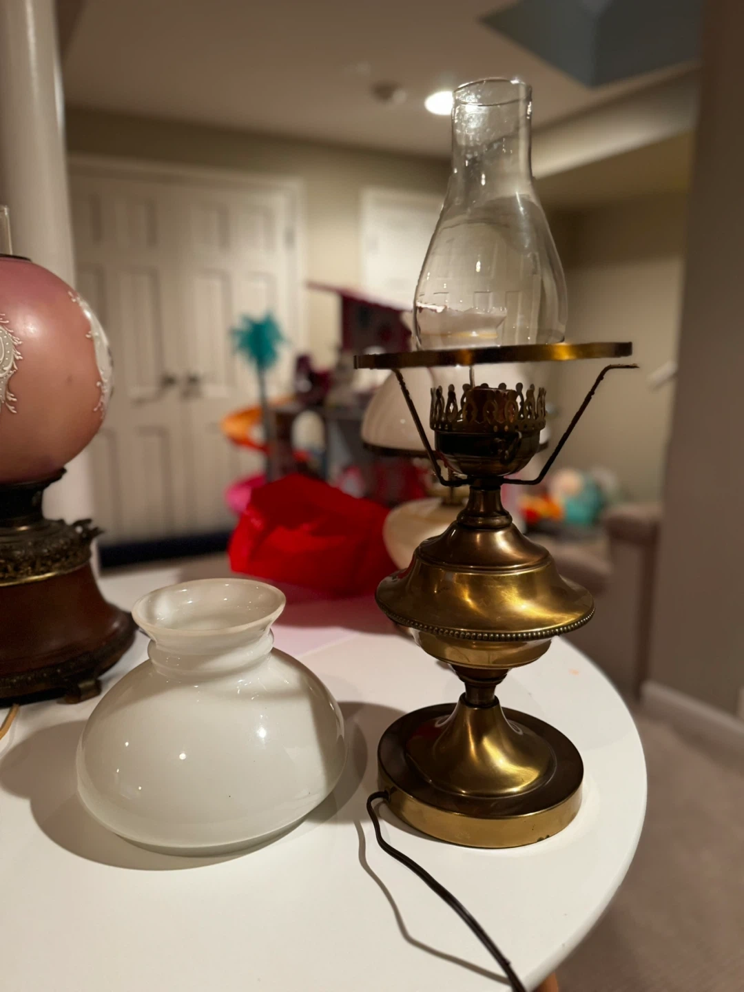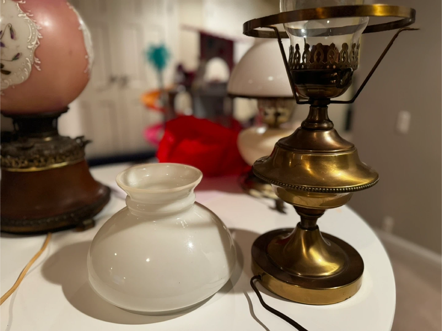Selling a beautiful antique brass hurricane lamps! It features a clear glass chimney and a classic design. These lamps would make a lovely addition to any home decor. The lamps are in good condition and ready to use!
