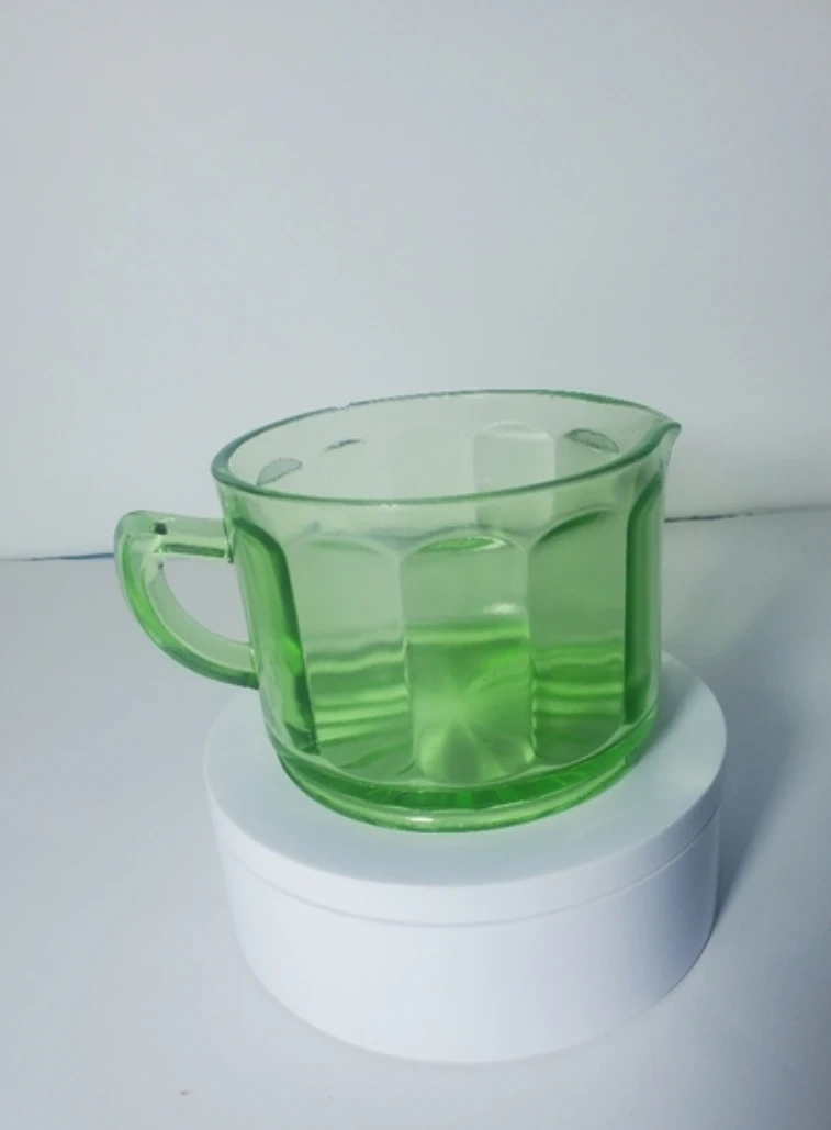 65Antique Creamer With Handle Uranium Glass Uranium Glass Creamer With Handle There are a couple of chips on the top Please see pictures Decorative Good Condition