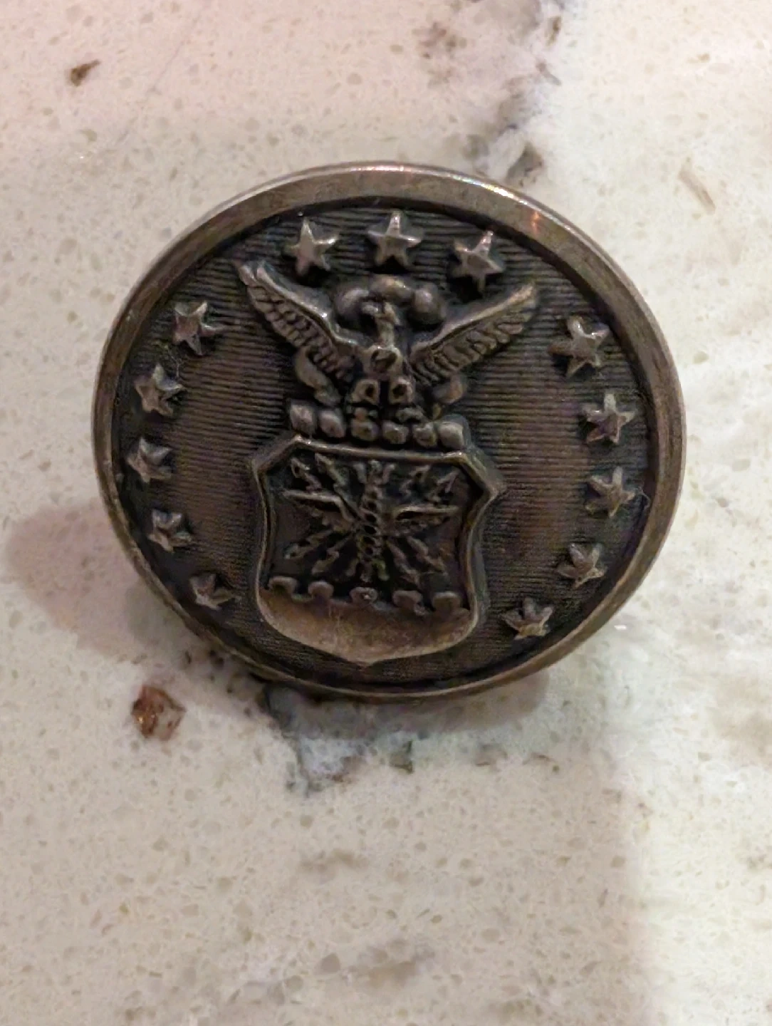 326Selling a Antique Metal USA air Force uniform coat collector button Scovill Mfg Co. button. It features an eagle and stars design on the front and the Scovill Mfg Co. mark on the back. It's in good condition for its age and would be a great addition to any collection!