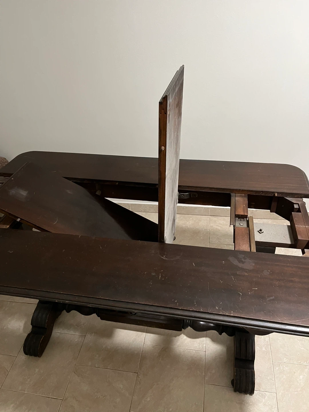 Antique Wood Dining Table with built in leaf