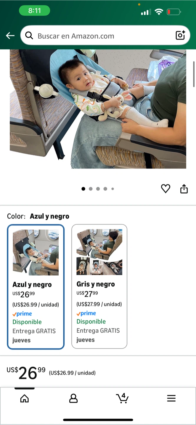 I have a brand new baby airplane bed still in its original packaging! It's blue and black, and ready to make your next flight with your little one much more comfortable