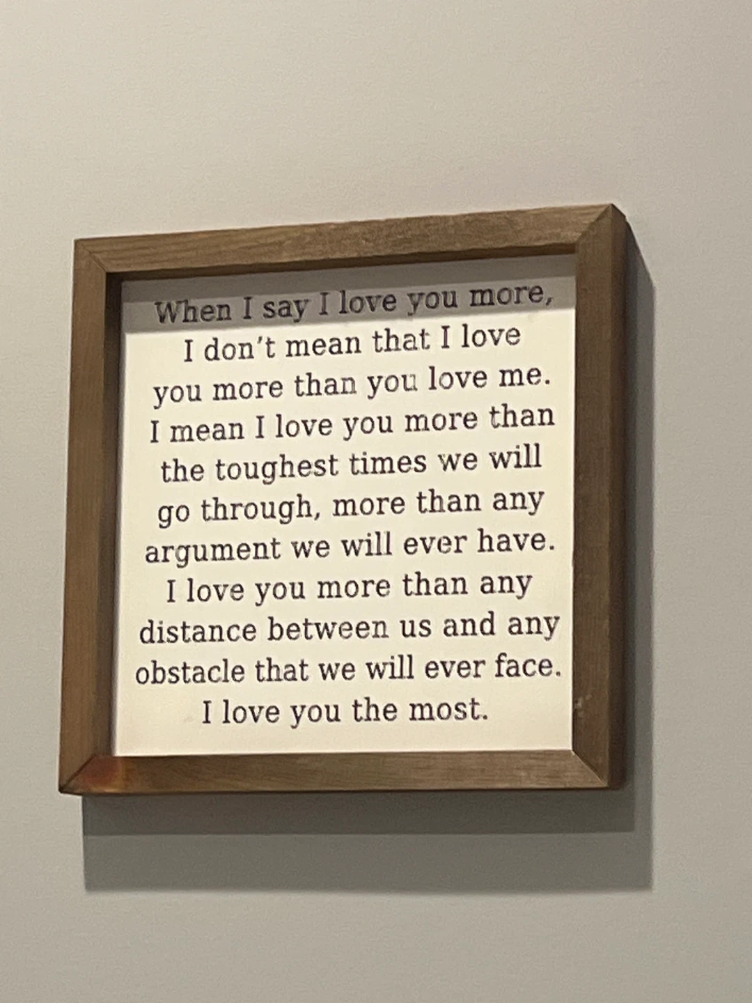 1 / 11 / 1Buy & SellArtArt$4Framed quote of “when I say I love you more…”ConditionLike newDimensions12x1.5x12WHERE TO MEETCheck LocationView MapSELLERSheebaPrinters Row240 reviews0 chats·1 favorites·18 viewsSEND CHAT TO SELLERHi Sheeba! I’m interested in your listing.Hi Sheeba! I’m interested in your listing.Get the Karrot app to chatSign In to chat