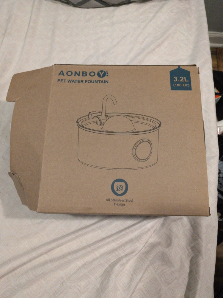 Selling a brand new AONBOY pet water fountain! It holds 3.2L (108 oz) and features an all stainless steel design. Comes with the original box and components