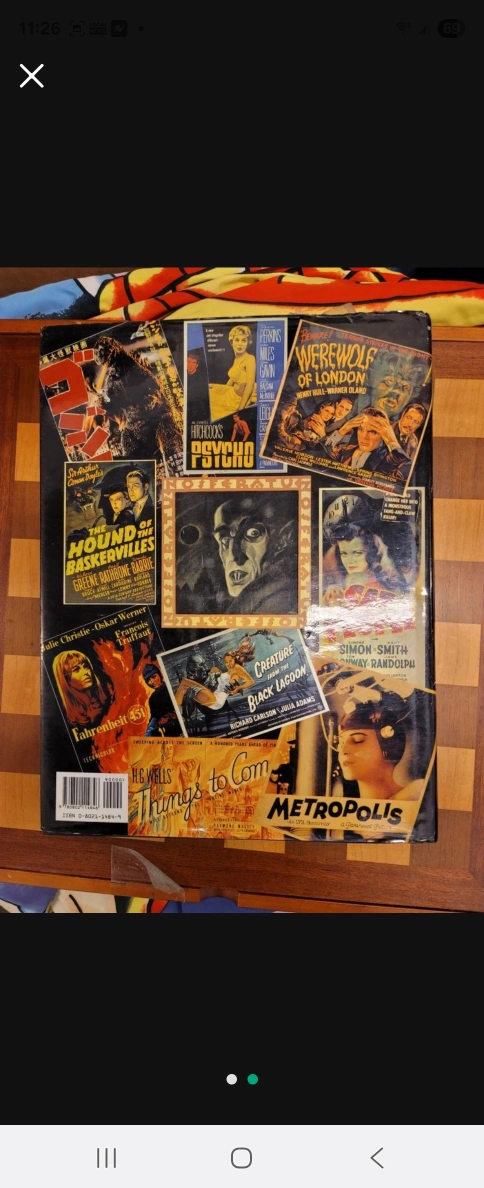 A hardcover book, featuring various movie posters on the cover. Includes a collection of horror, fantasy, science fiction. Reading this would be a great way to unwind after a long day.