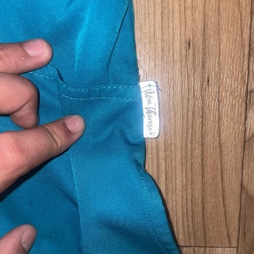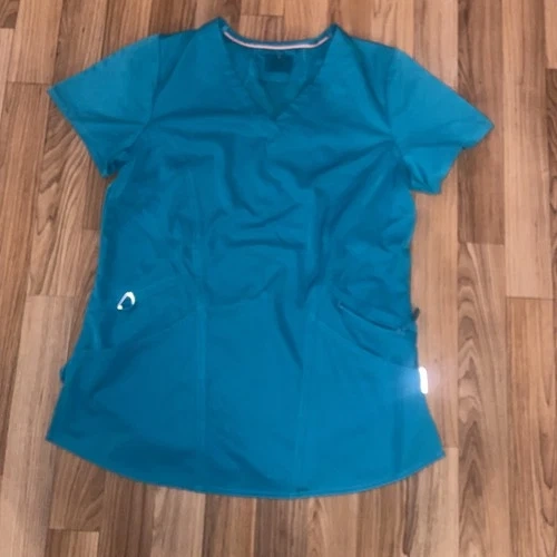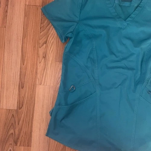 This Ava Theresa women's scrub top in size small features a stylish V-neck design with convenient pockets, making it perfect for the medical industry. Made from a comfortable blend of polyester and cotton, this teal-colored top is sure to add a fun and cute touch to your summer wardrobe. With a solid pattern and a focus on quality, this scrub top from Ava Theresa is a great choice for any female healthcare professional.