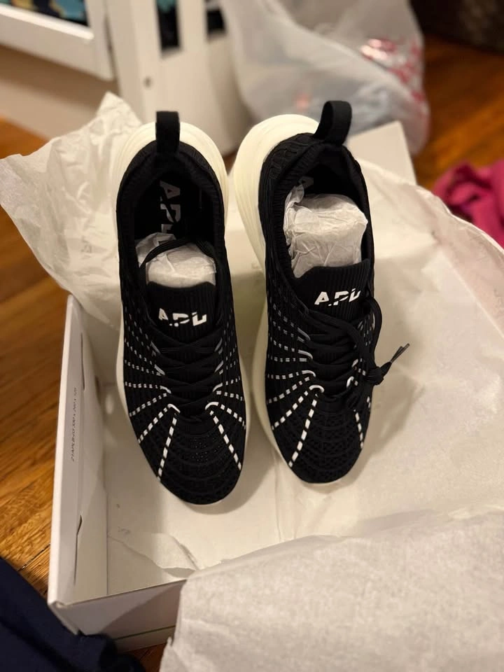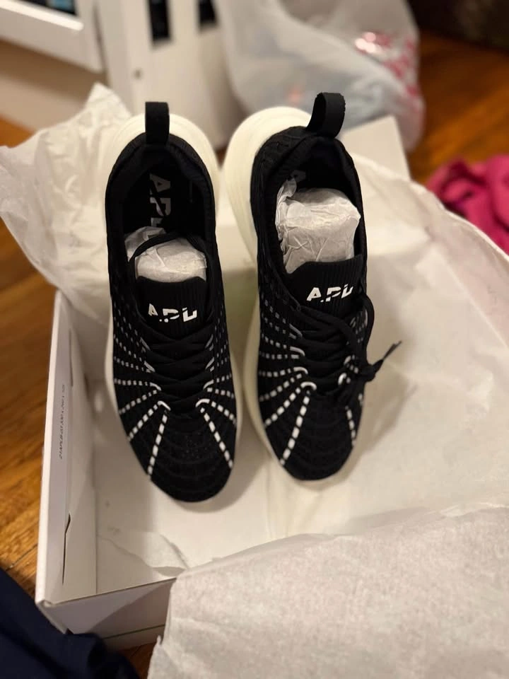 Lightweight and high-performance APL (Athletic Propulsion Labs) TechLoom Zipline sneakers in sleek black and white. Designed for running and training but stylish enough for everyday wear. • Men’s size 9.5 • Worn lightly, excellent condition • Breathable knit upper with streamlined support • No major flaws – see photos • Originally retailed for $320 Let me know if you're interested!