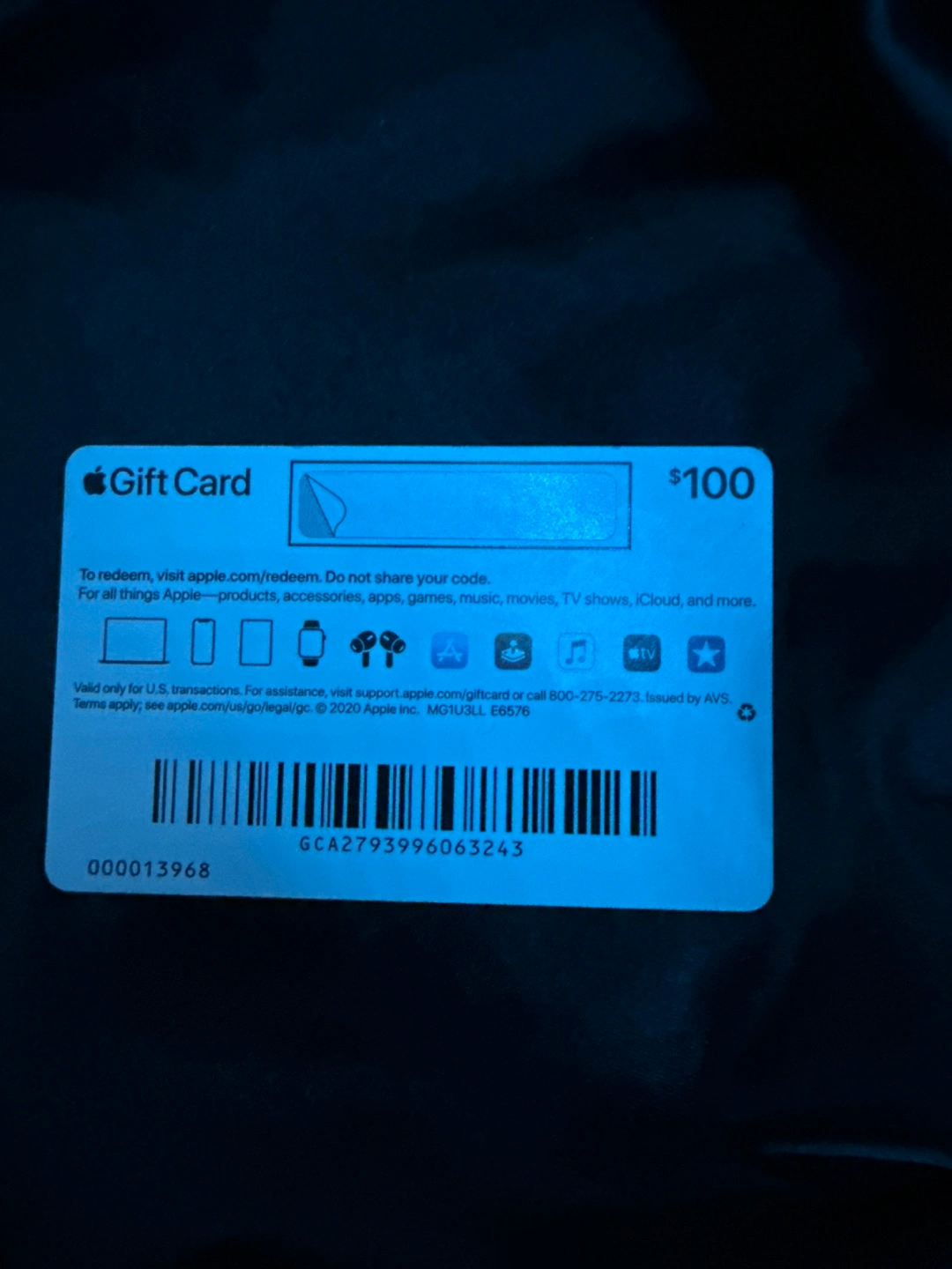 Selling an Apple gift card worth $100! It can be used for all things Apple products, accessories, apps, games, movies, TV shows, iCloud, and more