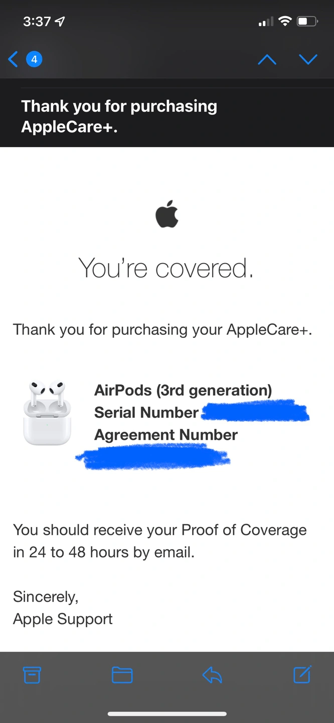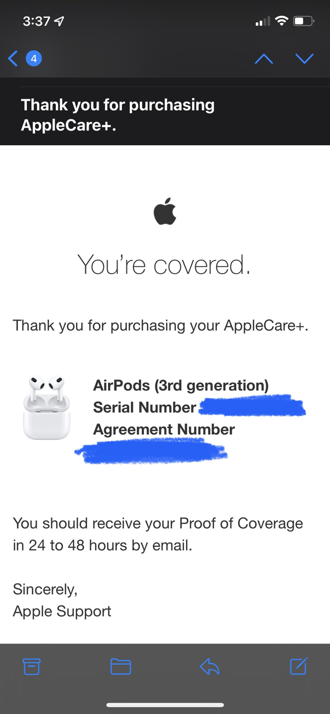 apple air pods 3rd generation comes with applecare+ (coverage until Oct.2023) purchased on Oct.2021 used less than 10 times at home only. in mint condition. thank you.