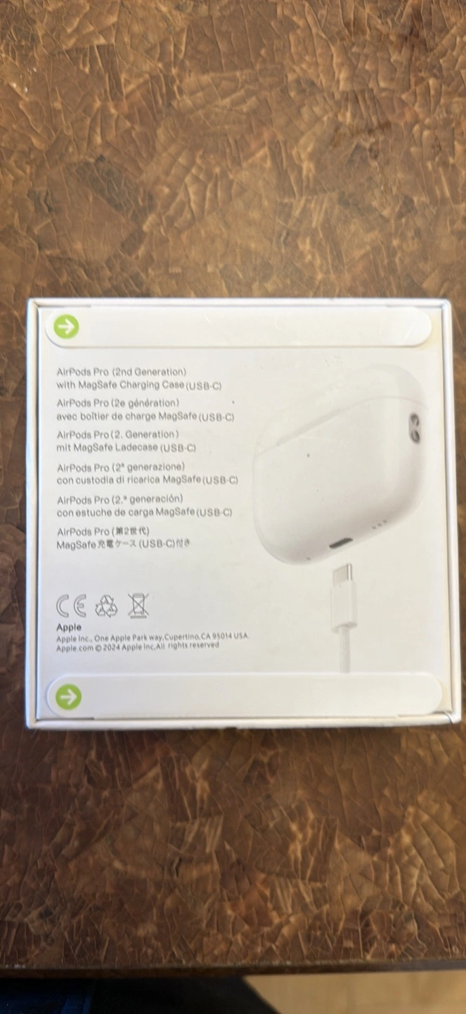 10New Apple AirPods Pro 2nd generation. Includes MagSafe charging case and USB-C cable. Wireless earbuds. Premium sound quality. Excellent noise cancellation. Box never been opened. Got two for birthday.