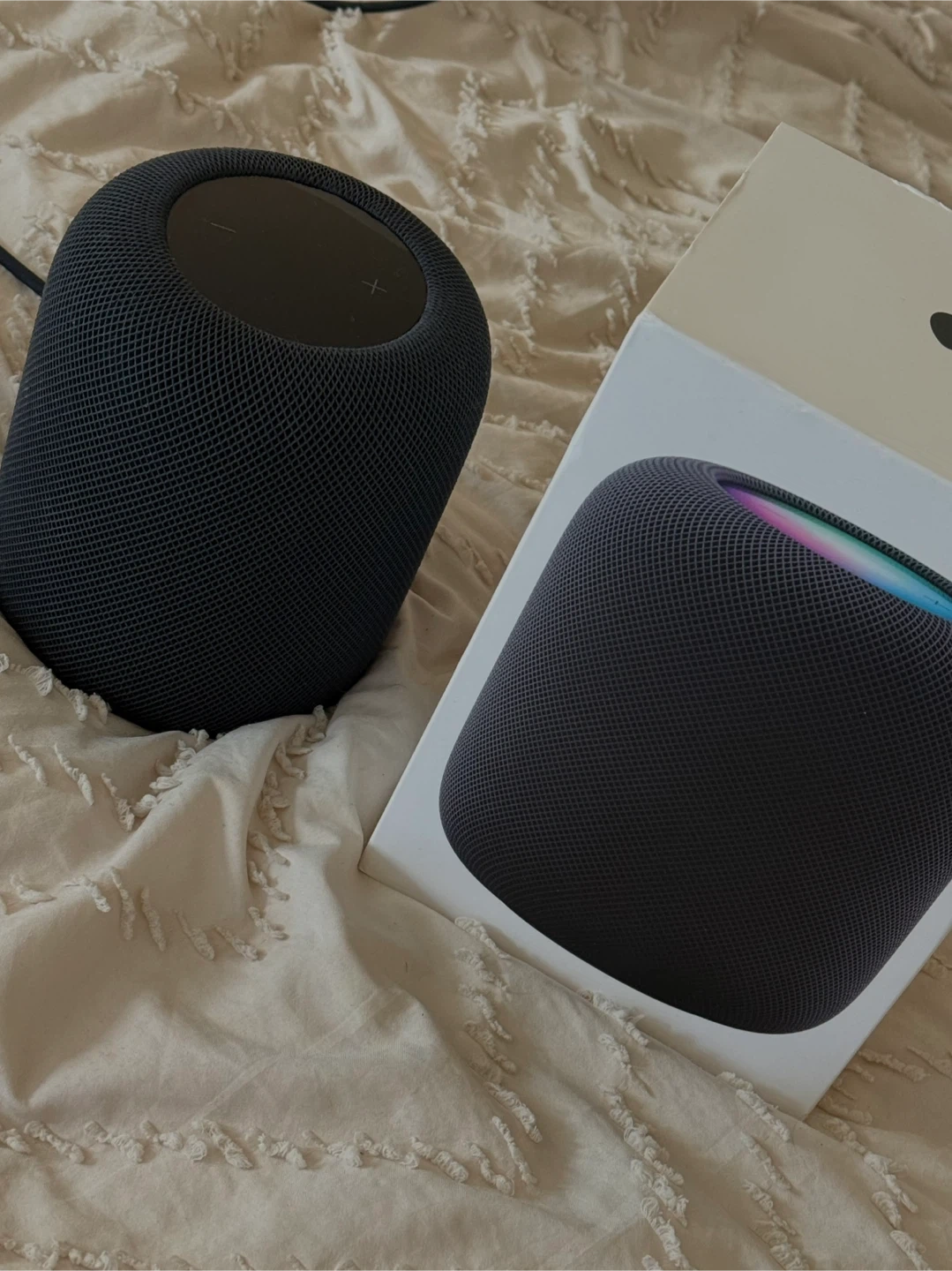 Selling a black Apple HomePod! It's in great condition and comes with the original box. Delivers rich, detailed sound with deep bass and clear vocals — perfect for music, podcasts, or controlling your smart home with Siri.